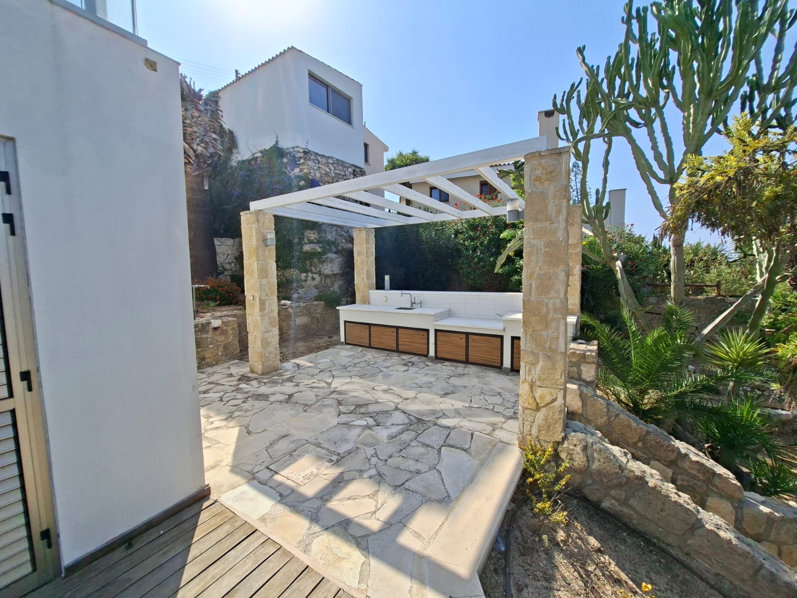 Outdoor area: Spacious BBQ and summer kitchen area with pergola
