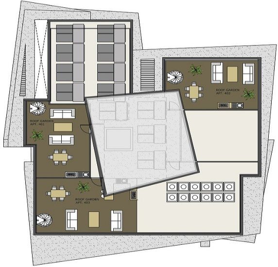 Предлагаемые апартаменты располагают личной оборудованной террасой на крыше, к которой ведет лестница с балкона.