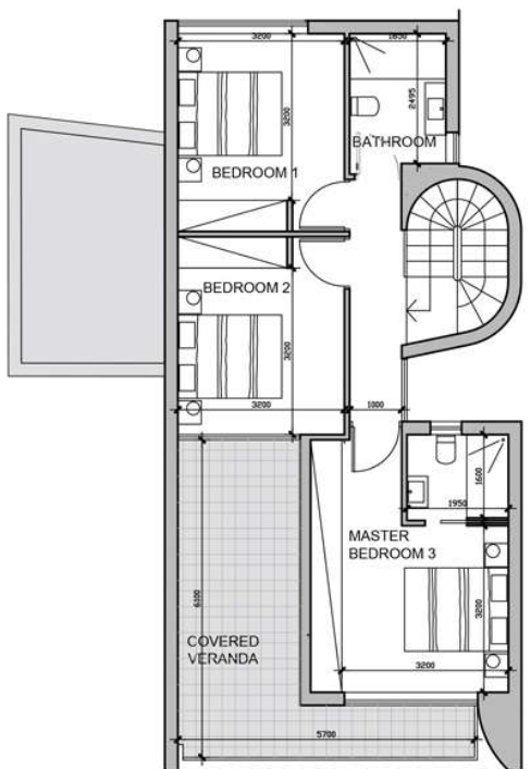 Верхний этаж: 3 спальни с двуспальными кроватями (главная спальня с собственной ванной комнатой), крытая веранда, семейная ванная комната.