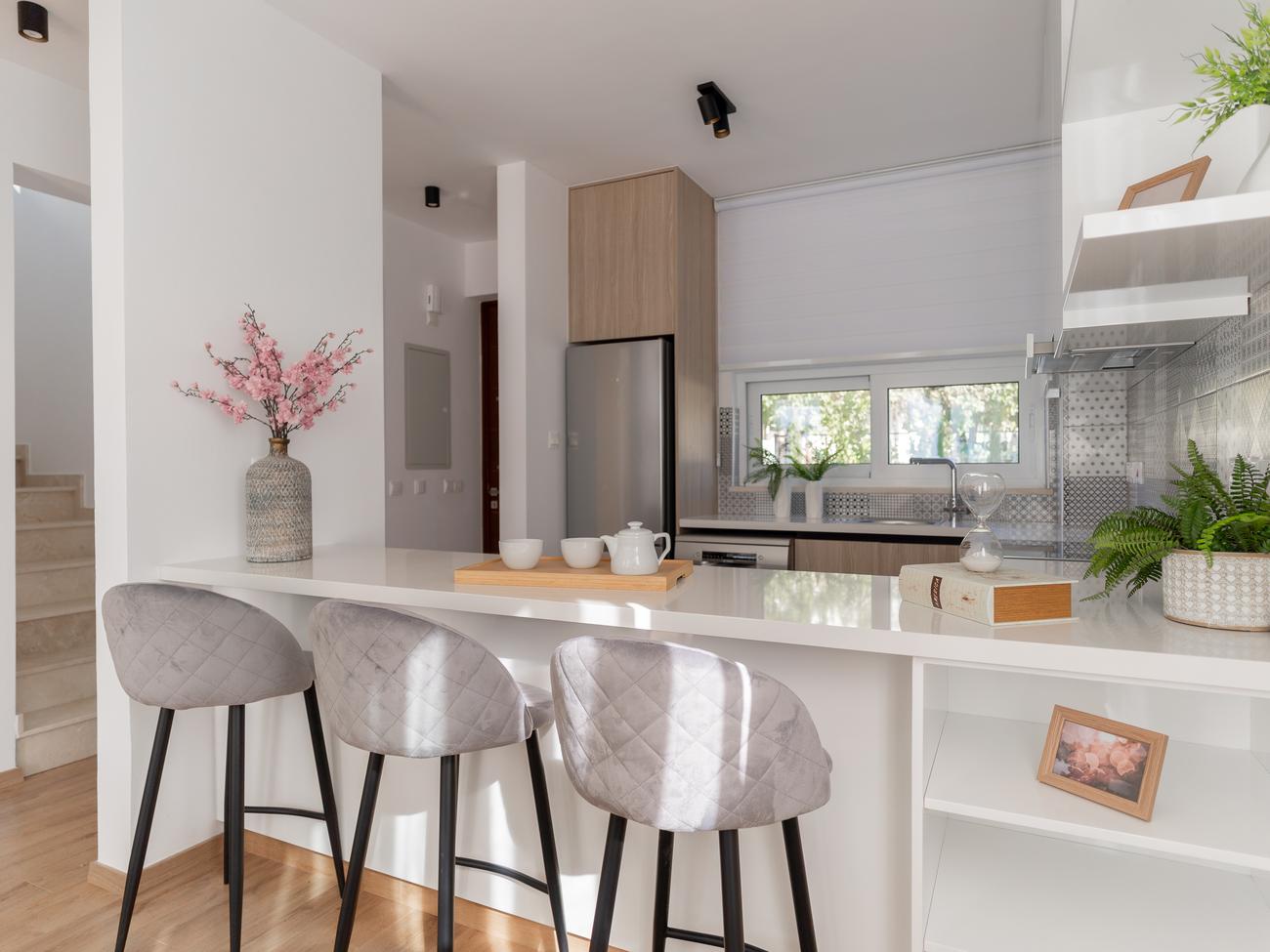 При входе на виллу через крытый вход просторные жилые помещения на первом этаже включают в себя полностью оборудованную кухню с обеденной зоной и современную гостиную, а также на этом уровне находится гостевой туалет. На верхнем этаже расположены три спальни и две просторные ванные комнаты. Жители этой виллы имеют преимущество использования личного бассейна.