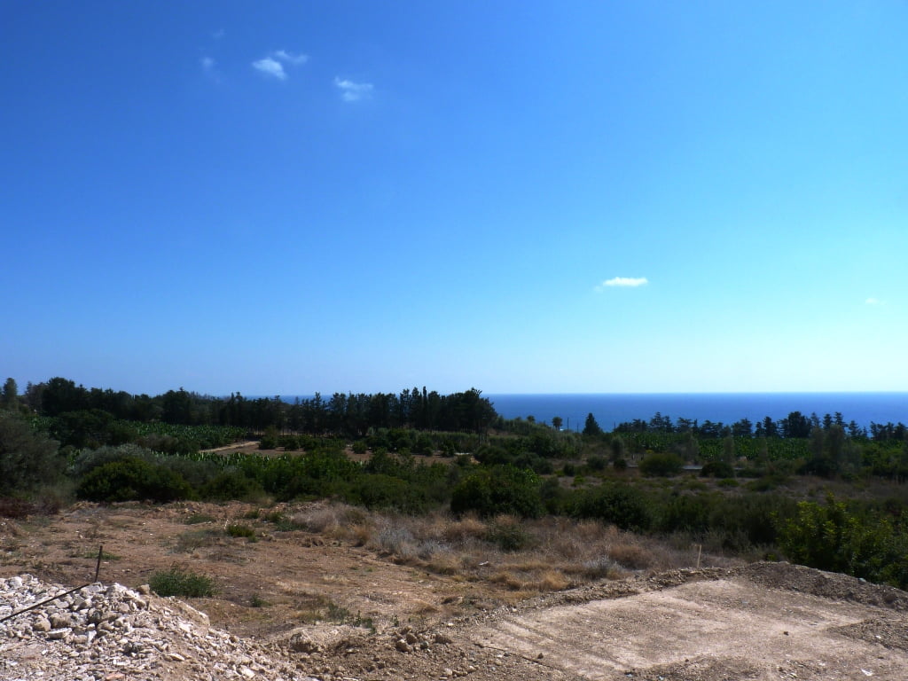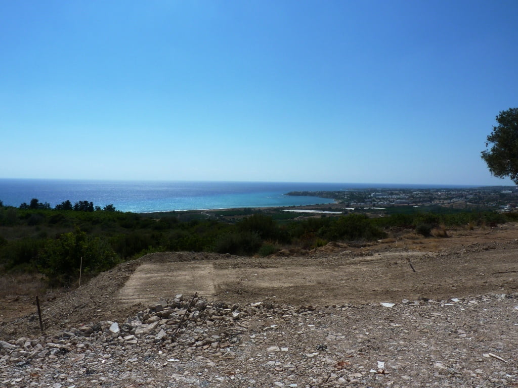 Учасок земли площадью 7420м2 находится на краю холма напротив будущей марины Пафоса. Прекрасные песчаные пляжы Корал Бэй находятся всего в 1500 метрах, а непосредственно сам Пафос в 5 км. Участок ровный, размерами 74 х 100м, полностью приватный. Высота над уровнем моря 100 метров, что позволяет избежать высокой влажности свойтсвенной прибрежной полосе. Участок расположенный перед ним находится на 10 метров ниже. С участка открывается великолепный вид на море и бухту.