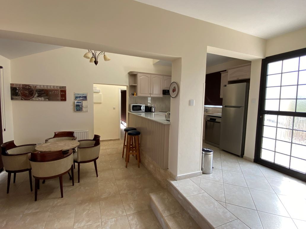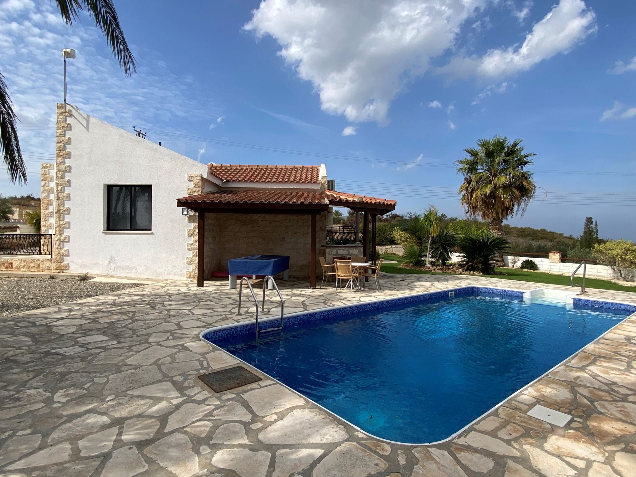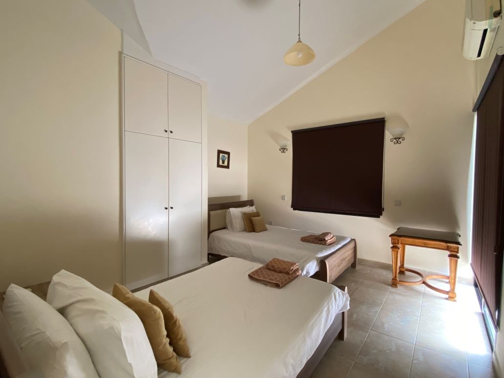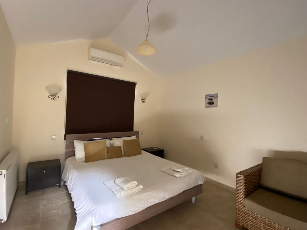 Это роскошное бунгало расположено в красивейшем вечнозеленом местечке Кипра — Лачи. Дом после ремонта, располагает большим участком с оливковой рощей, бассейном, лужайкой и садом. Вход в бунгало начинается с небольшого холла, далее находится кухня, столовая, в правом крыле две гостиные зоны с камином и выходом на веранду, а также просторная ванная комната. В левом крыле две большие спальни и ванная комната. Помимо камина, имеется и дизельное отопление. В паре минут езды находится марина Лачи с многочисленными тавернами, кафе и магазинами, а также прекраснейшие песчаные и галечные пляжи.