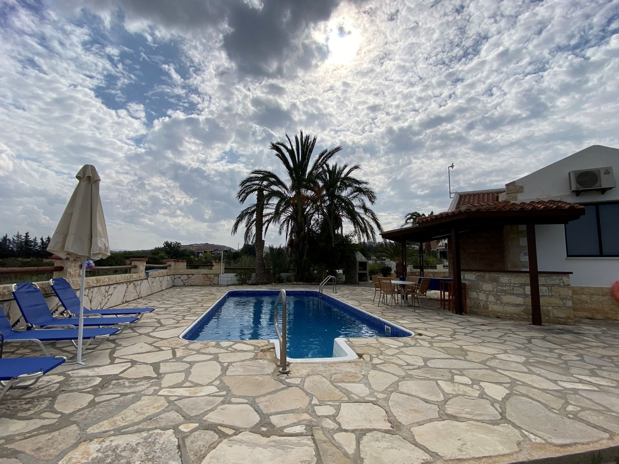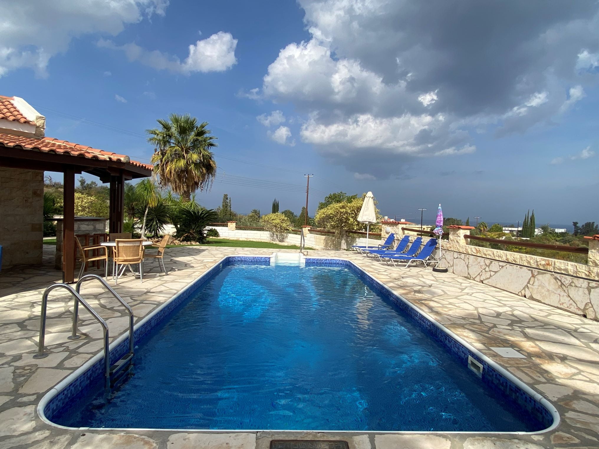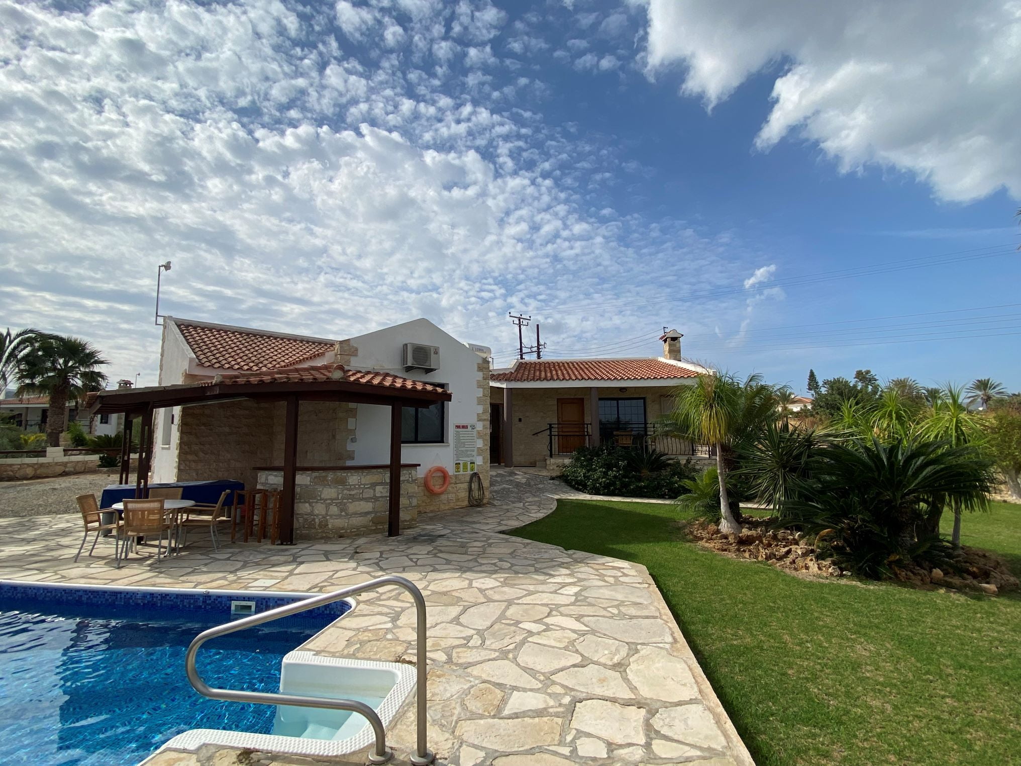 Это роскошное бунгало расположено в красивейшем вечнозеленом местечке Кипра — Лачи. Дом после ремонта, располагает большим участком с оливковой рощей, бассейном, лужайкой и садом. Вход в бунгало начинается с небольшого холла, далее находится кухня, столовая, в правом крыле две гостиные зоны с камином и выходом на веранду, а также просторная ванная комната. В левом крыле две большие спальни и ванная комната. Помимо камина, имеется и дизельное отопление. В паре минут езды находится марина Лачи с многочисленными тавернами, кафе и магазинами, а также прекраснейшие песчаные и галечные пляжи.