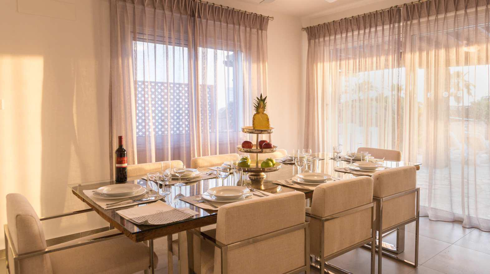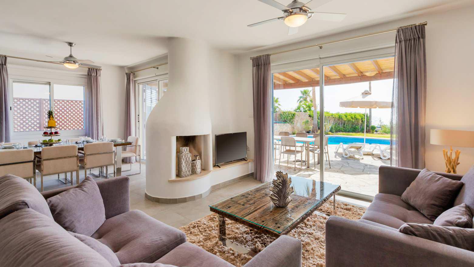 Первый этаж — главное жилое пространство: впечатляющая гостиная с камином, спальня, столовая и современная кухня, которая выходит прямо на террасу у бассейна. Огромные раздвижные двери наполняют дом светом и открывают вид на бирюзовый бассейн и море. Второй этаж полностью отдан под две спальни — каждая с большими окнами, встроенными шкафами и выходом на балконы с видом на море. Мастер-спальня имеет собственную ванную и незабываемый утренний вид на Средиземное море.