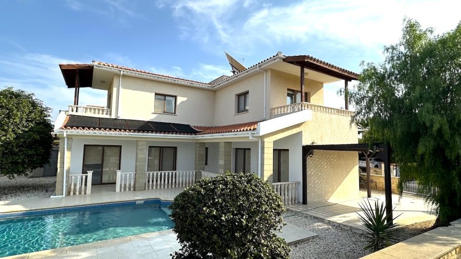 Расположенная в тихом жилом районе Акамас (Пейя), эта прекрасная отдельностоящая вилла с тремя спальнями сочетает в себе средиземноморский шарм и современные удобства.