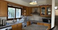 Отдельная кухня с гранитными столешницами и деревянным гарнитуром