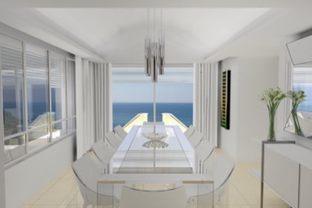 Классический выдержанный стиль домов с элементами средиземноморского дизайна, а также исключительно высокое качество строительных и отделочных материалов, разительно выделяют данный проект от остальных расположенных неподалеку. Здесь воплощены последние достижения технической мысли об умном доме, а бытовая техника во всех виллах фирмы Gaggenau. Дома состоят из нескольких уровней с лифтом. Первый уровень включает в себя: паркинг на несколько автомобилей, кинозал, сауну, ванную комнату. серверную, гостевую спальню. На среднем уровне раположены: гостиная с камином, отдельная кухня, столовая, ванная комната. Выше находятся спальные комнаты (главная с джакузи и камином) с собственными ванными отделанными мозаикой и балконами, а на четвертом уровне кабинет с террасой на крыше. Все окна и двери оборудованы автоматическими алюминиевыми ролетами, а совершенная звукоизоляция стен и стеклопакетов позволяют достичь совершенной тишины в доме.