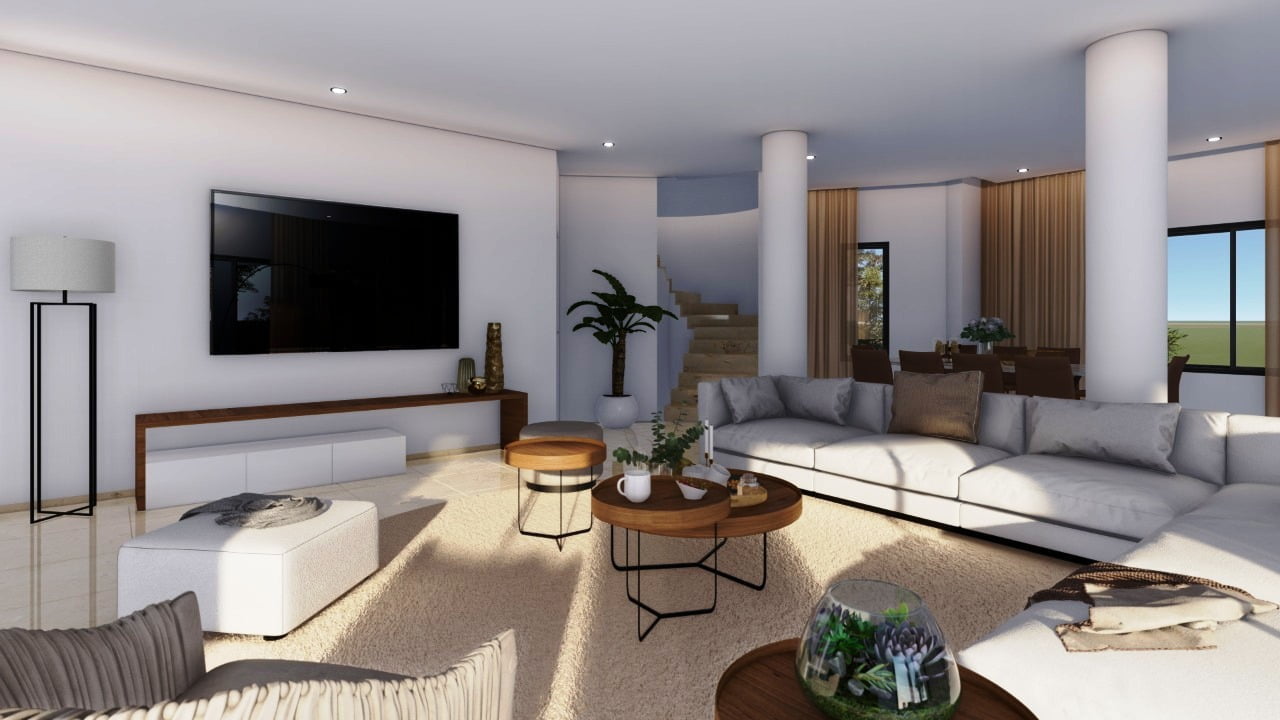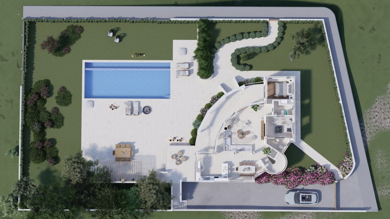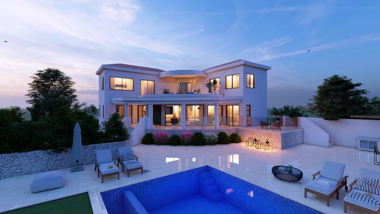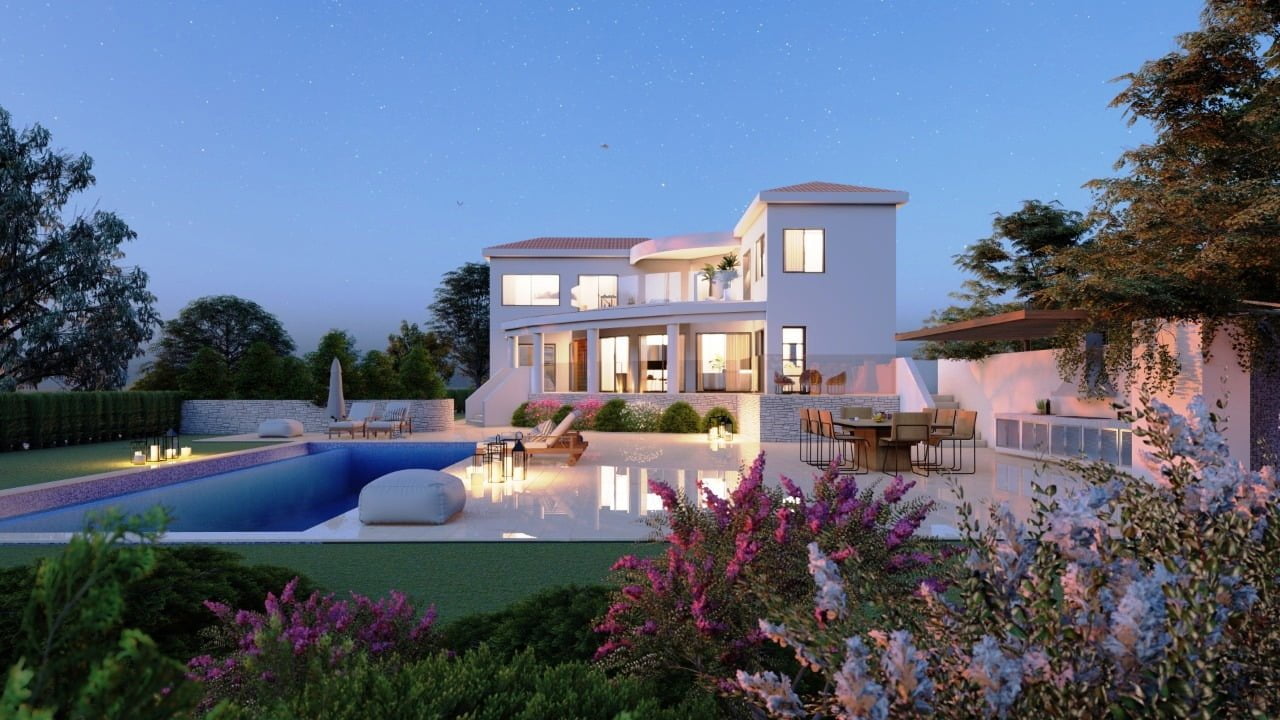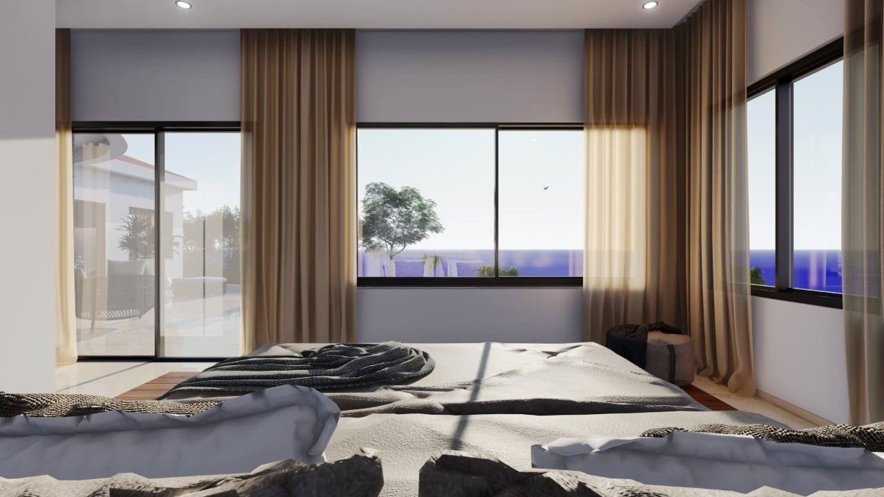 Вилла состоит из трех уровней и являет собой результат работы лучших дизайнеров Кипра. Широкая лестница ведет к главному входу в дом, при котором находится гостиная поражающая своими размерами, столовая с кухней открытого плана, санузел, две спальни и ванная комната. На верхнем этаже две спальни с гардеробными и санузлами, большая терраса с потрясающим видом на море и морской закат. На цокольном этаже также имеется спальня, дополнительная кухня с прачечной, санузел, спортзал. Отделочные материалы высочайшего качества, система умный дом, центральная система кондиционирования, ландшафтный дизайн, большой бассейн.