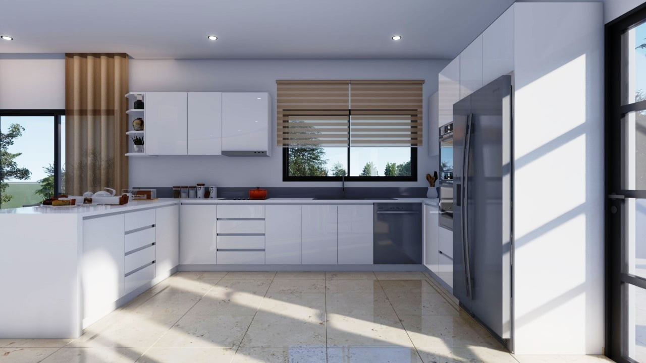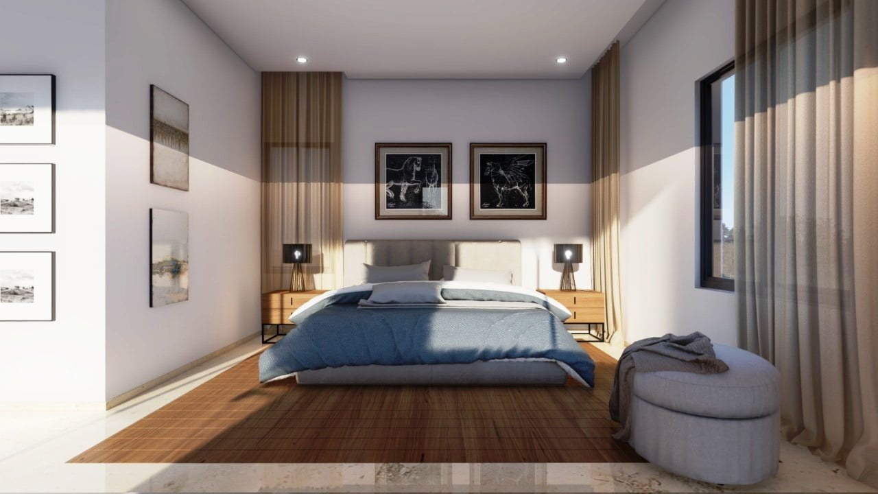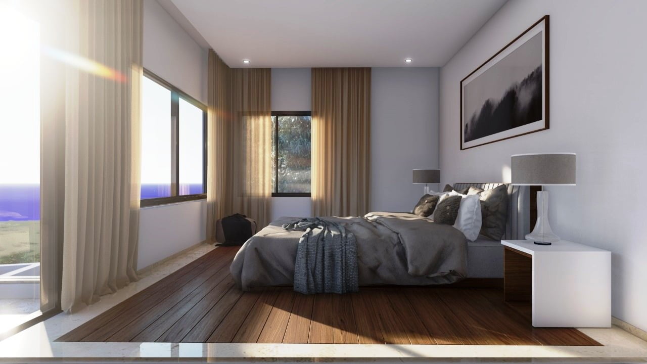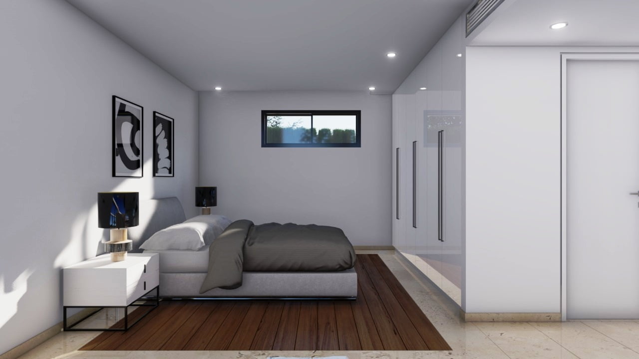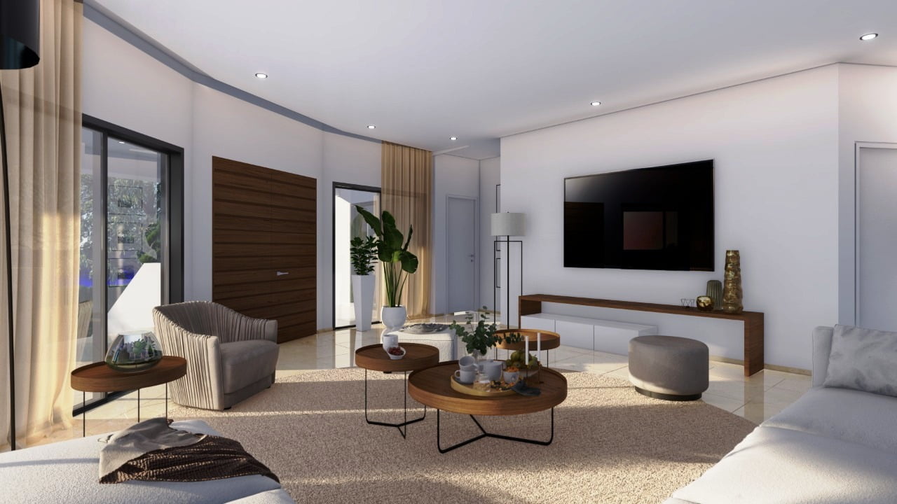 Вилла состоит из трех уровней и являет собой результат работы лучших дизайнеров Кипра. Широкая лестница ведет к главному входу в дом, при котором находится гостиная поражающая своими размерами, столовая с кухней открытого плана, санузел, две спальни и ванная комната. На верхнем этаже две спальни с гардеробными и санузлами, большая терраса с потрясающим видом на море и морской закат. На цокольном этаже также имеется спальня, дополнительная кухня с прачечной, санузел, спортзал. Отделочные материалы высочайшего качества, система умный дом, центральная система кондиционирования, ландшафтный дизайн, большой бассейн.