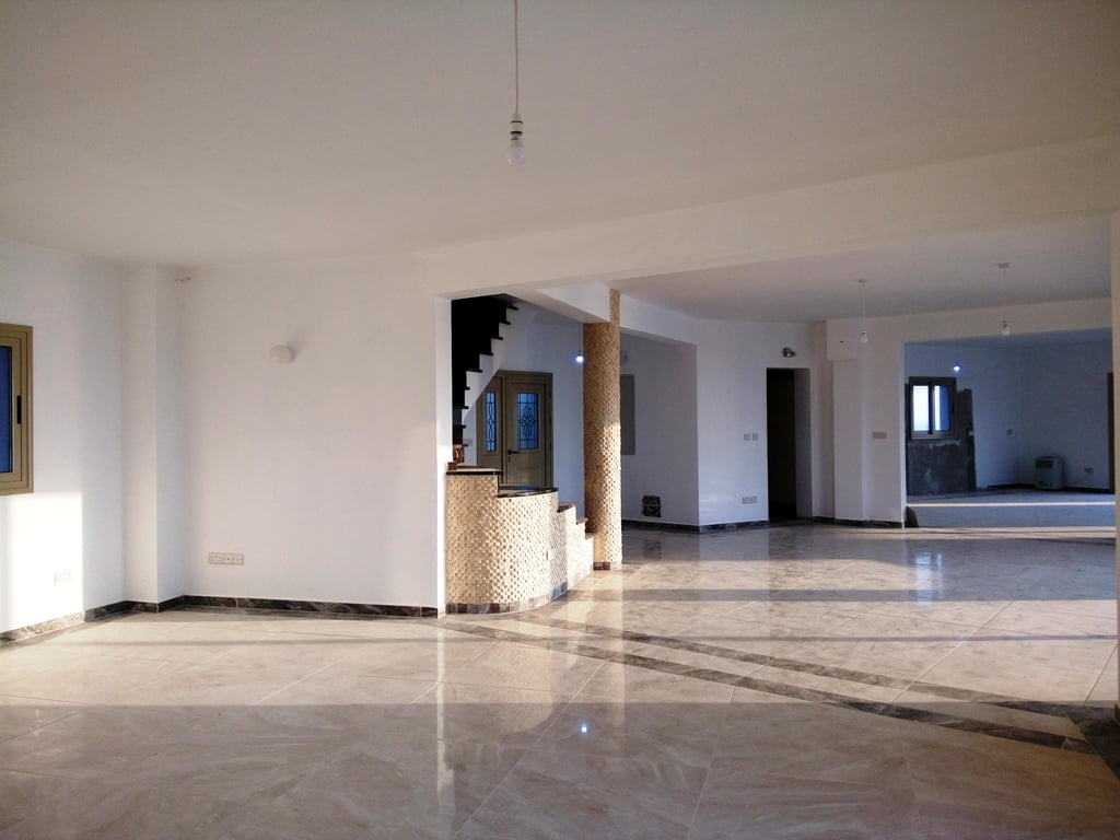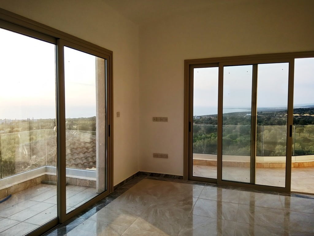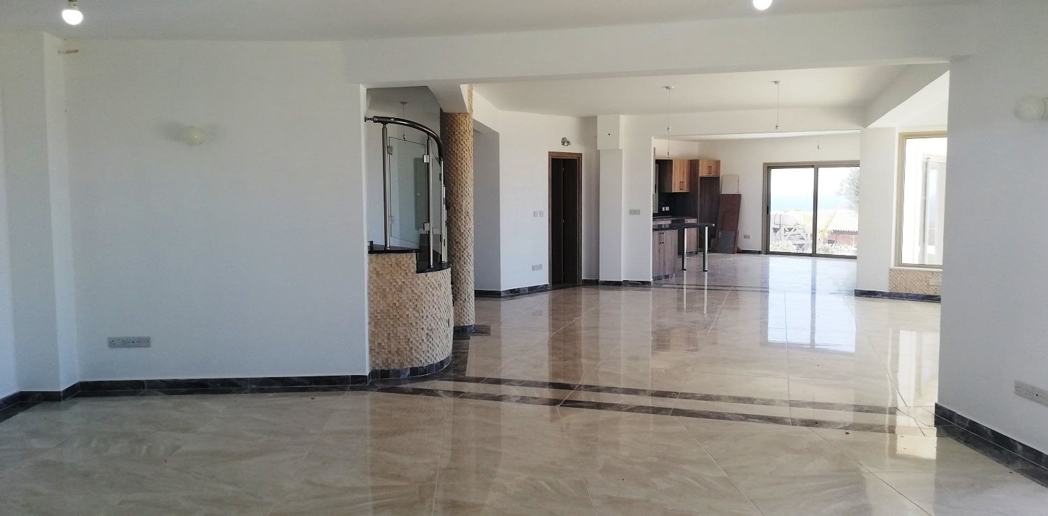 На первом этаже находится большая гостиная с камином, столовая, санузел, кухня, кладовое помещение, спальня с собственным санузлом. Отделанная мрамором лестница ведет на второй этаж с тремя спальнями с балконами и санузлами. Главная спальня располагает отдельной гардеробной комнатой. Изо всех комнат открывается изумительный вид на море. Еще выше имеется терраса на крыше с великолепным видом на море, горы и заповедник.