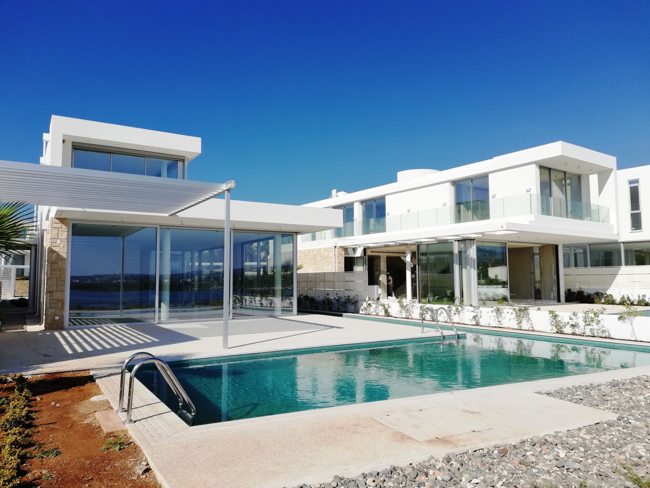 Вилла является частью комплекса закрытого типа, расположенного на первой линии от моря на берегу живописной бухты. Стильный дизайн дома с большими панорамными окнами создает ощущения свободного полета. При постройке использовались самые современные материалы отделки. Это Умный дом с сертификатом энергосбережения.