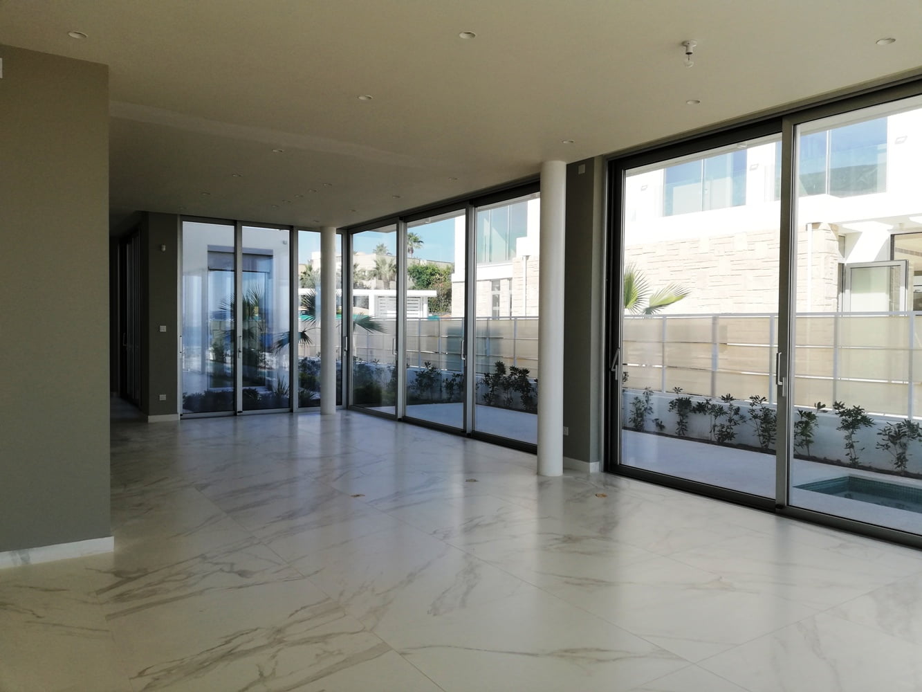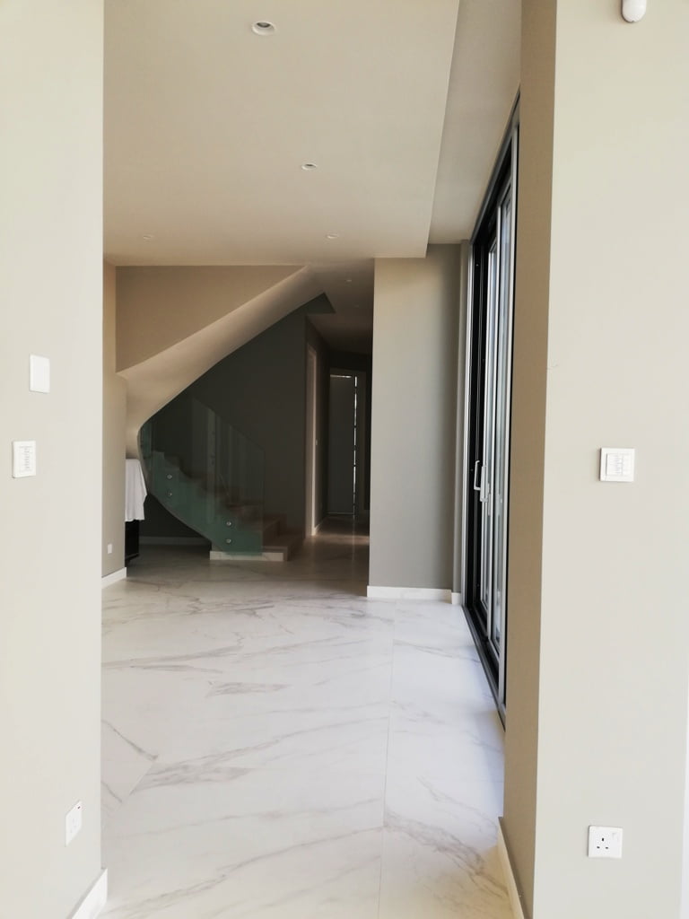На первом этаже виллы расположена большая гостиная с выходом в сад и к бассейну, кухня, санузел, три спальни (все с личными санузлами). Второй этаж занимает просторная главная спальня с панорамными окнами, откуда открывается великолепный вид на море, гардеробной и ванной комнатой.