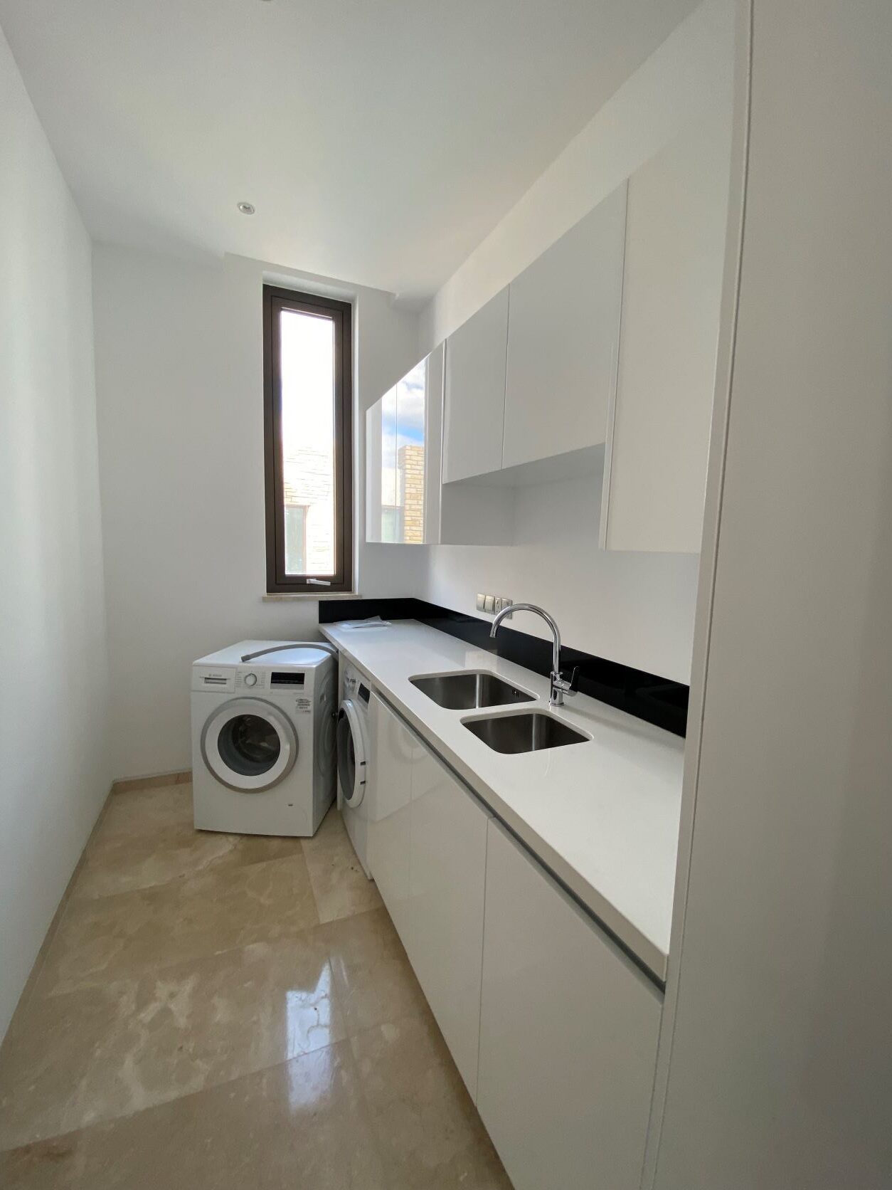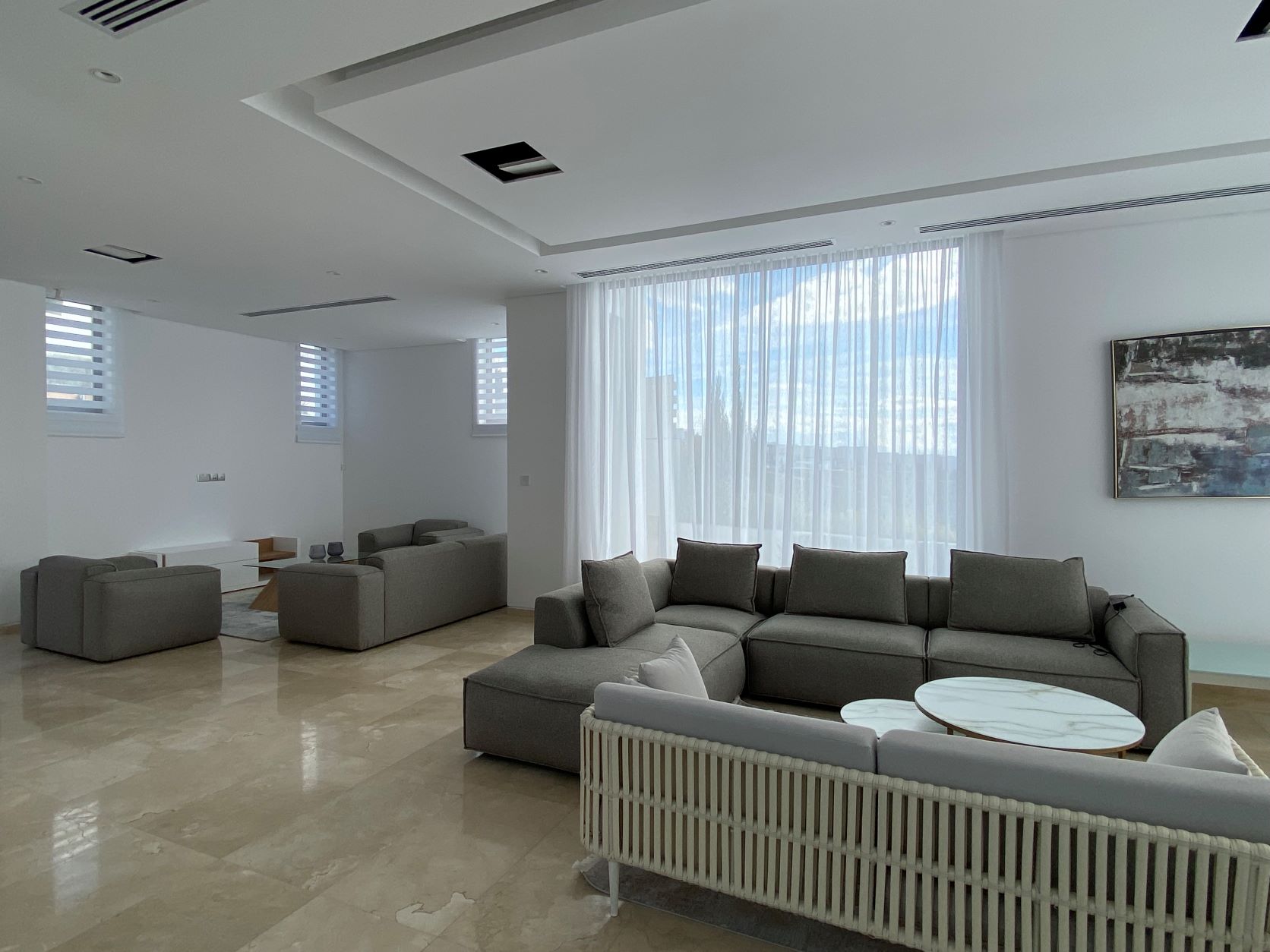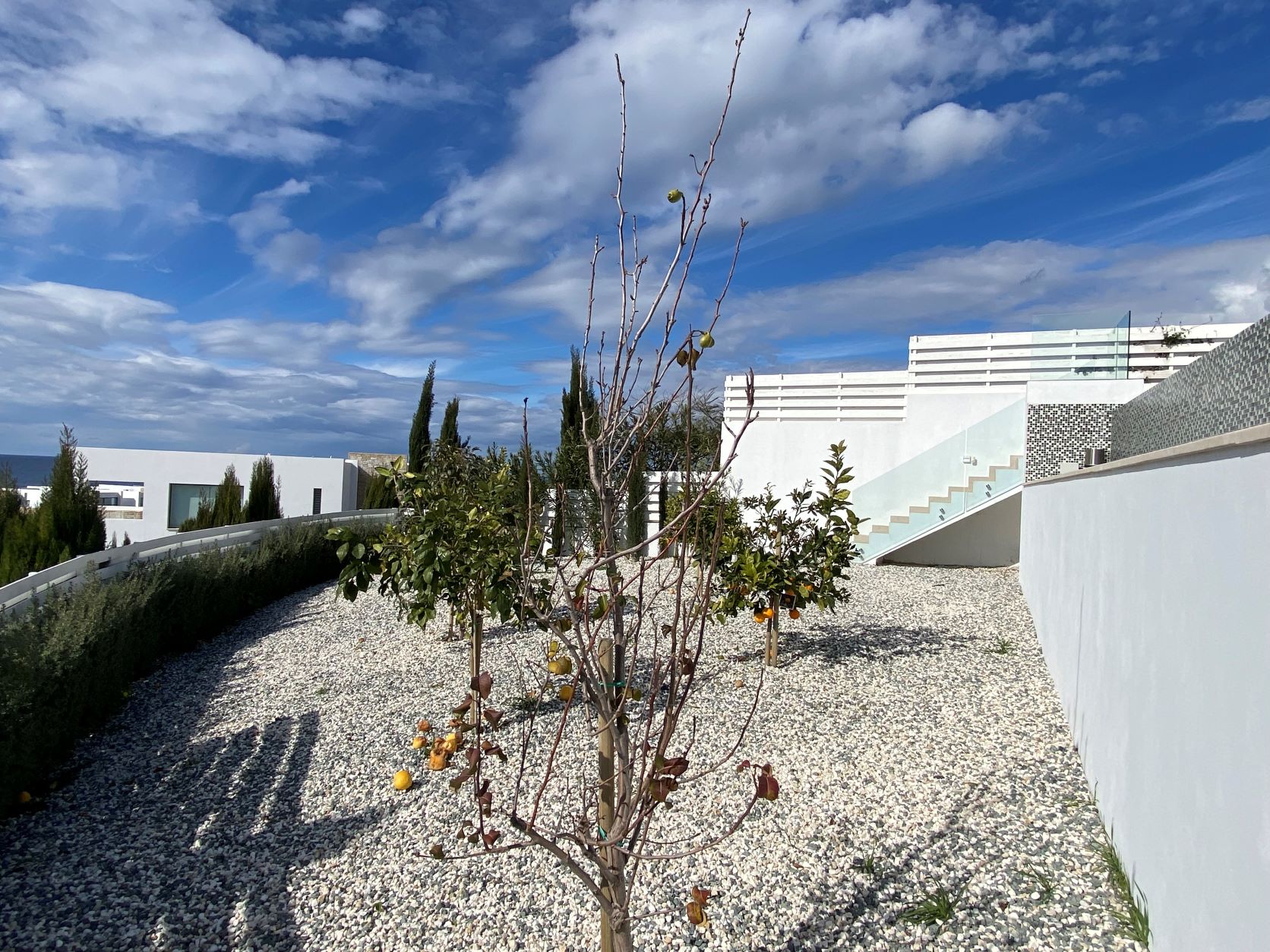 Данная вилла сочетает в себе современный стиль, высочайший уровень комфорта, систему Умный дом, элегантные дизайнерские решения и конечно же непередаваемые виды на море. На первом этаже дома расположена большая гостиная состоящая из двух зон, столовая с кухней открытого плана, прачечная, гостевой санузел, спальня. На втором этаже три большие с панорамными окнами спальни (главная с гардеробной и санузлом) и семейная ванная комната. Из гостиной патио двери ведут на большую террасу к бассейну с переливом и зоне барбекю, а также к саду с фруктовыми и цитрусовыми деревьями.