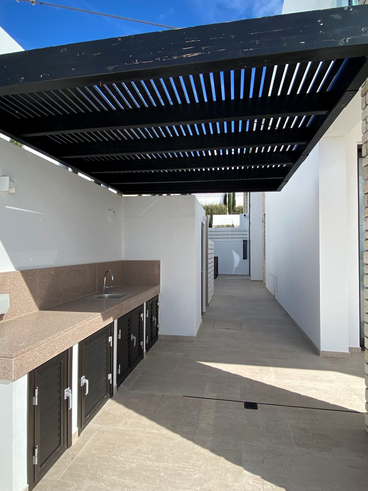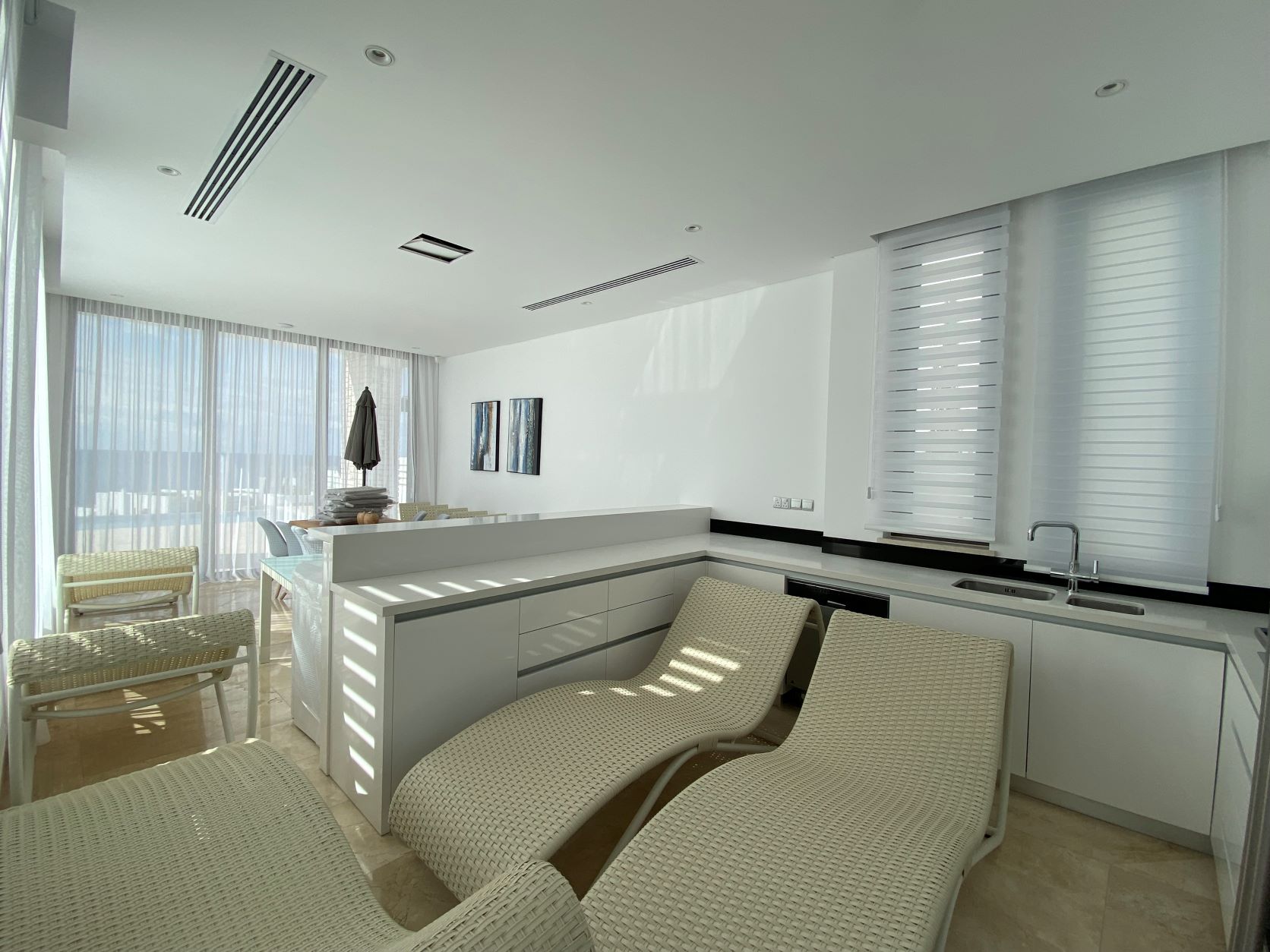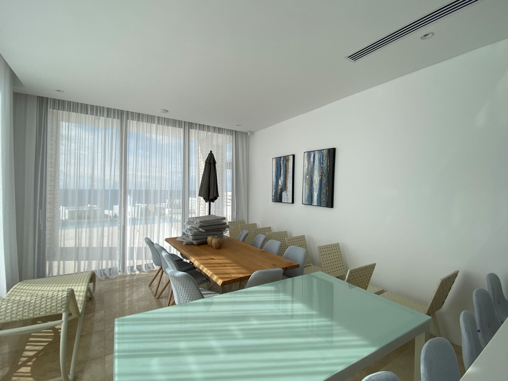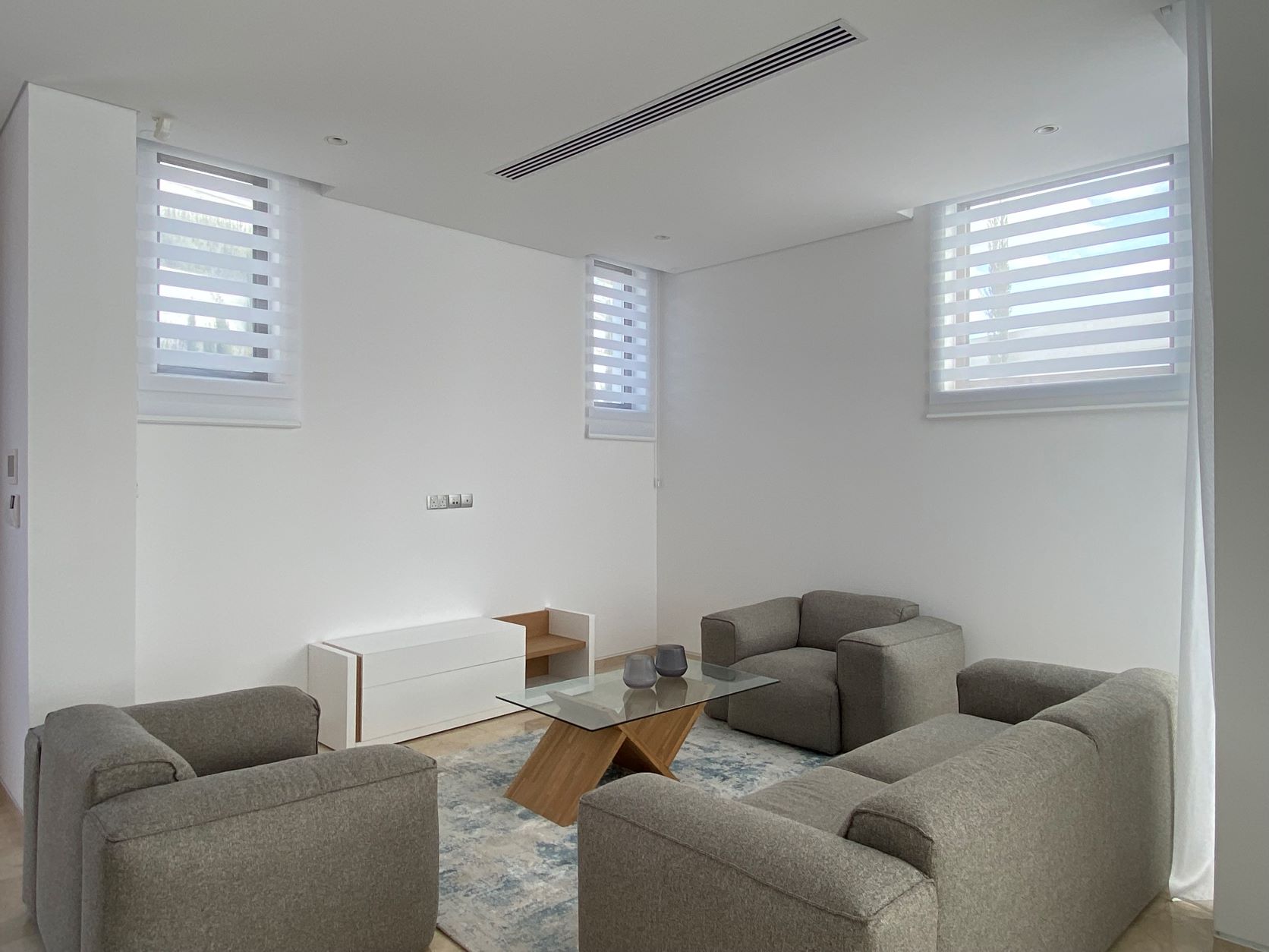 Данная вилла сочетает в себе современный стиль, высочайший уровень комфорта, систему Умный дом, элегантные дизайнерские решения и конечно же непередаваемые виды на море. На первом этаже дома расположена большая гостиная состоящая из двух зон, столовая с кухней открытого плана, прачечная, гостевой санузел, спальня. На втором этаже три большие с панорамными окнами спальни (главная с гардеробной и санузлом) и семейная ванная комната. Из гостиной патио двери ведут на большую террасу к бассейну с переливом и зоне барбекю, а также к саду с фруктовыми и цитрусовыми деревьями.