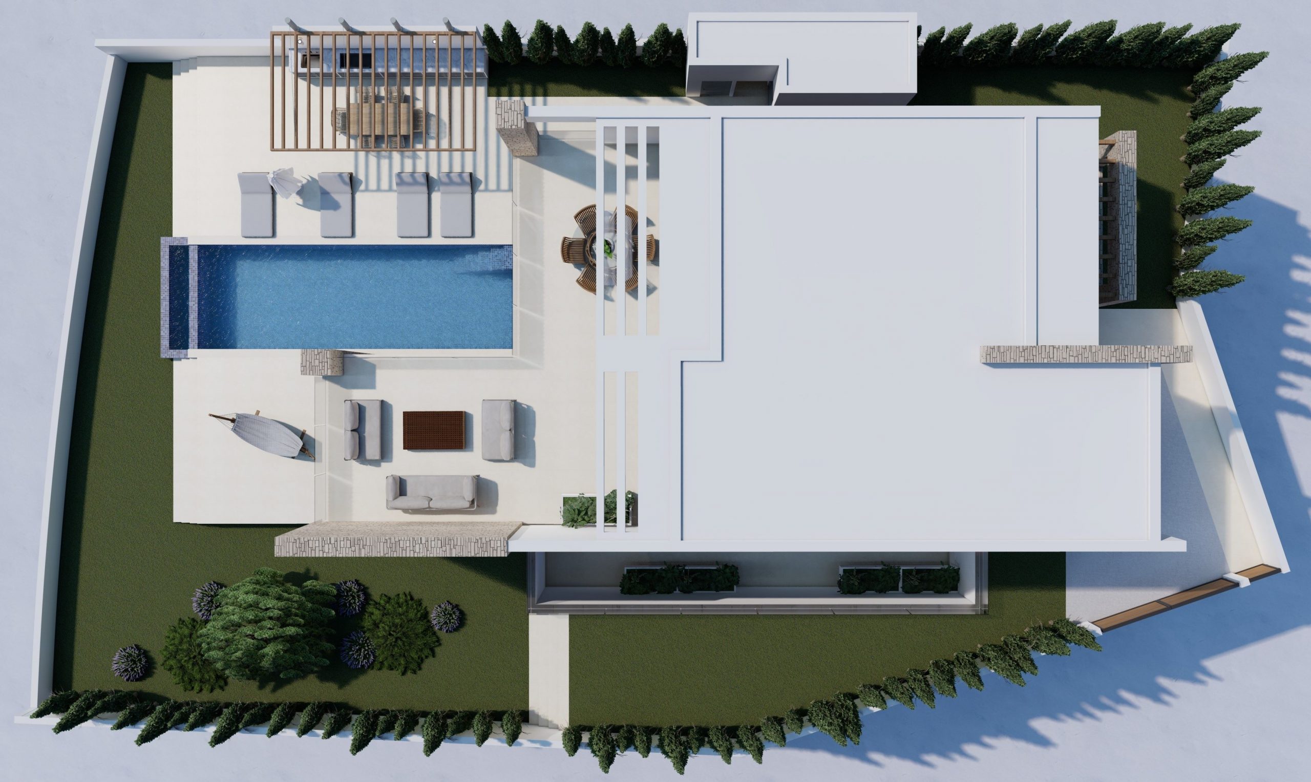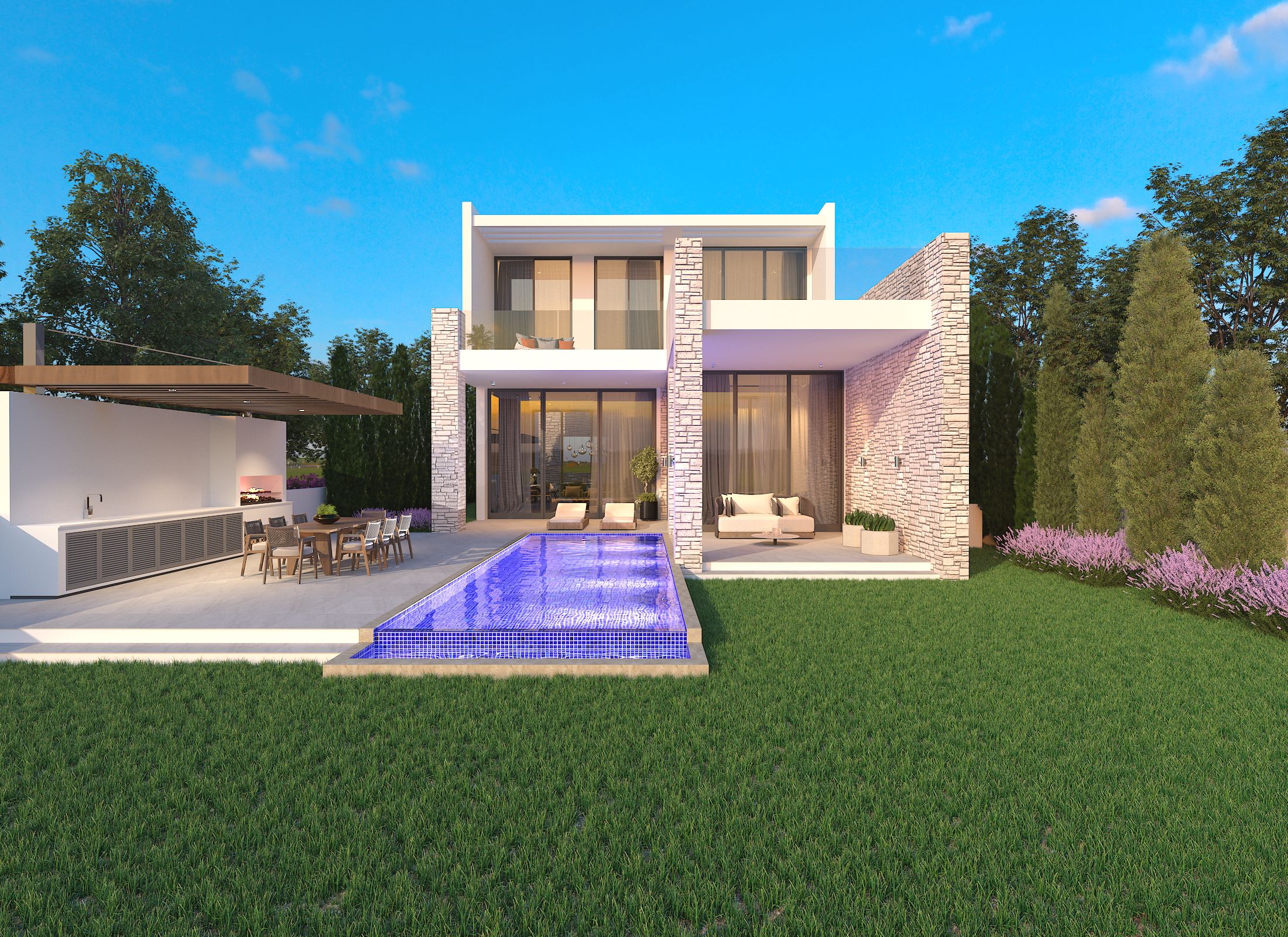 Дизайн и эстетика этого роскошного закрытого проекта призваны отразить суть частного сообщества мирового класса. Проект состоит из 35 строящихся на заказ вилл 7 различных типов и трех блоков роскошных апартаментов с высокой архитектурой и эстетикой с лучшим выбором материалов. Расположенный в безмятежном месте с возвышенностью над уровнем моря, райскими садами, клубом с круглосуточной стойкой регистрации, разнообразными ресторанами, частным тренажерным залом и фитнес-центром, первоклассной охраной и широким спектром качественных удобств.