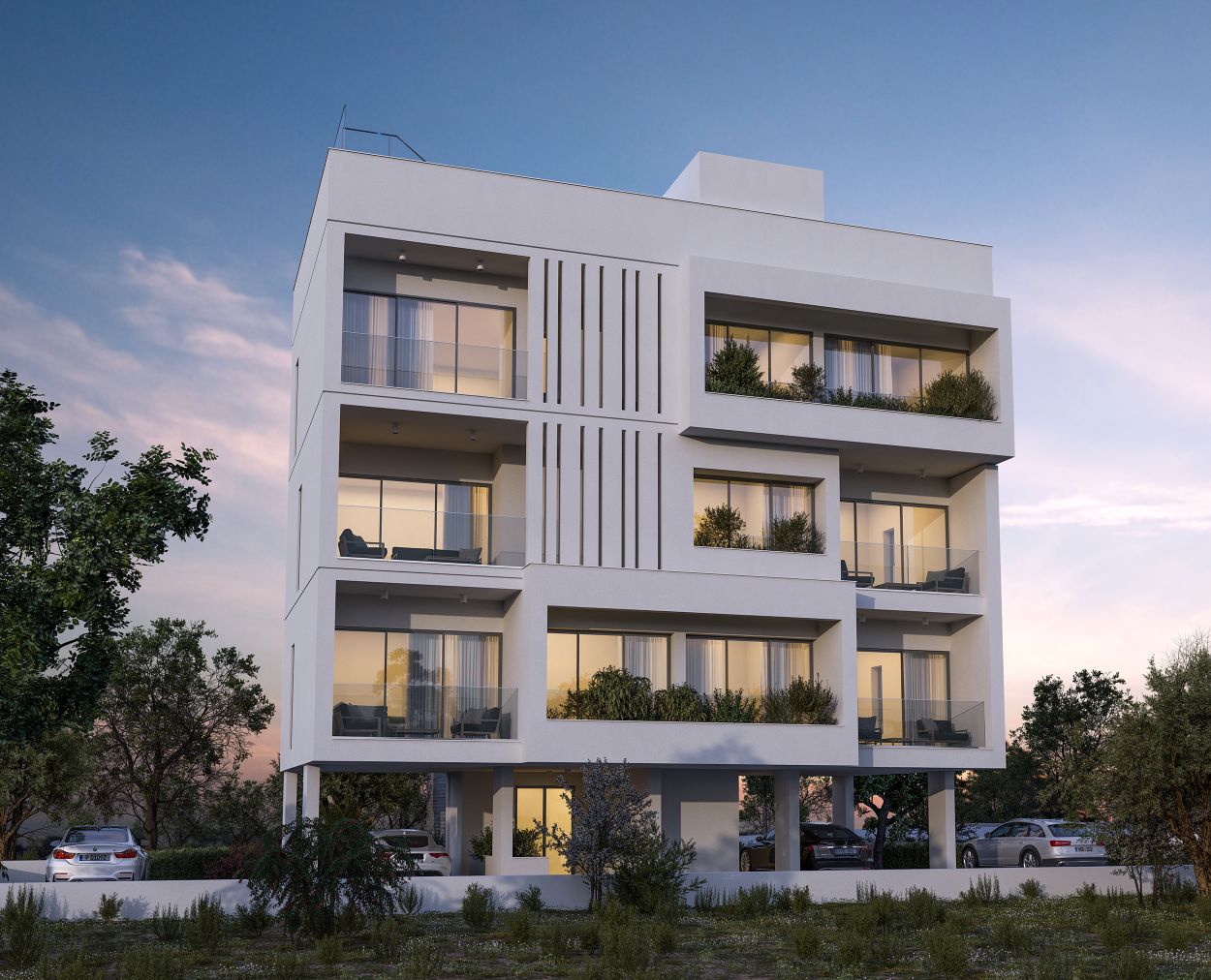 Построенное в современном стиле, с обилием естественного света и четкими геометрическими линиями, это идеальное здание для современного использования и жизни. Интерьеры отделаны светлым деревом, стеклом и хромом, что является воплощением утонченной изысканности. Здание состоит из трех этажей, всего с тремя частными этаж-апартаментами с большими верандами. На верхнем этаже находится общая зона отдыха с высококачественным дизайном и роскошным бассейном на крыше с видом на море.