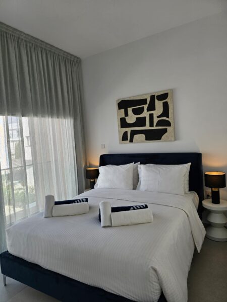 На вилле есть четыре просторные спальни, две с собственной ванной комнатой. Спальни красиво оформлены и обставлены удобными кроватями, шкафами и туалетными столиками. Ванные комнаты современные и оснащены высококачественными светильниками и фурнитурой.