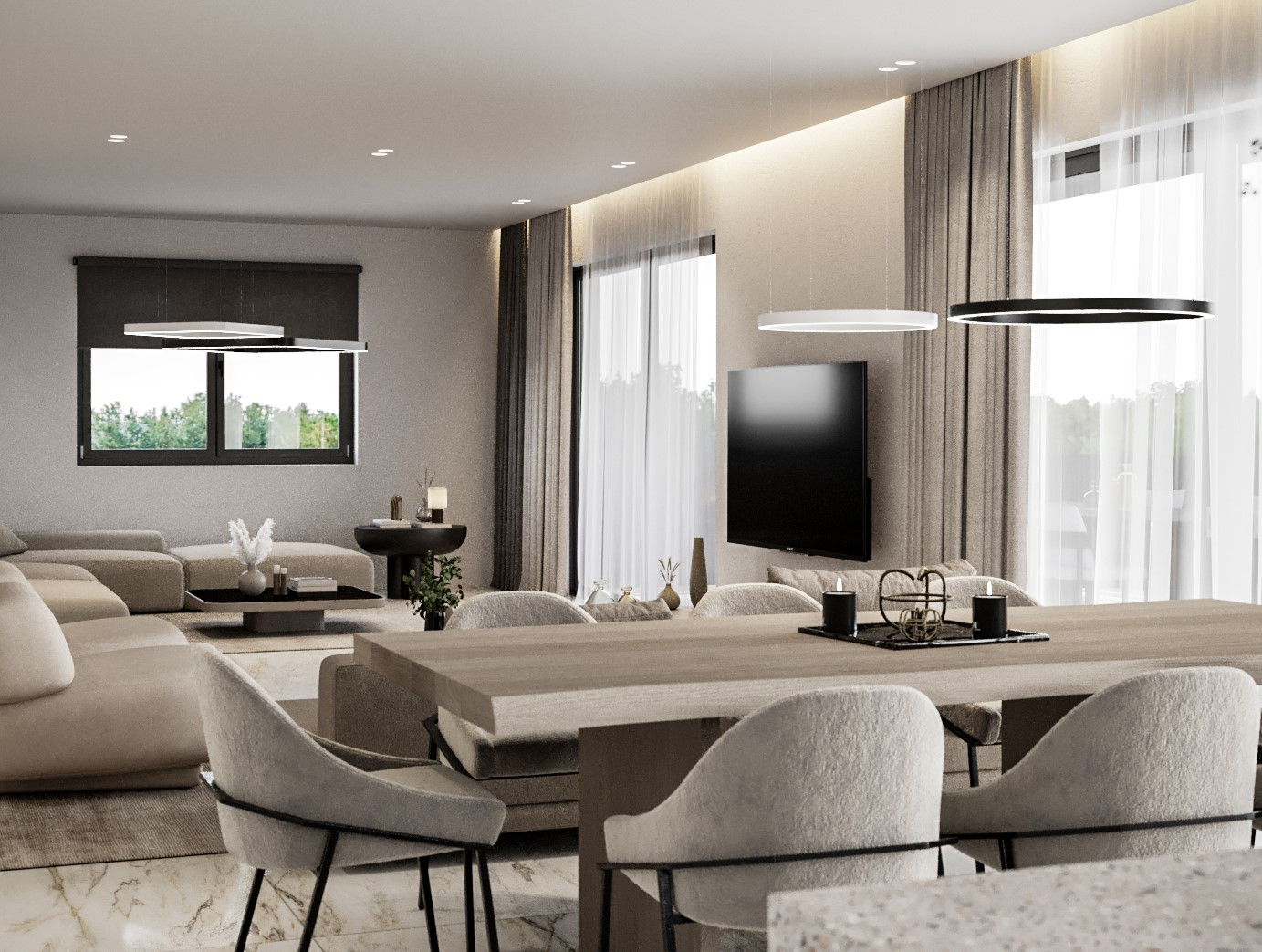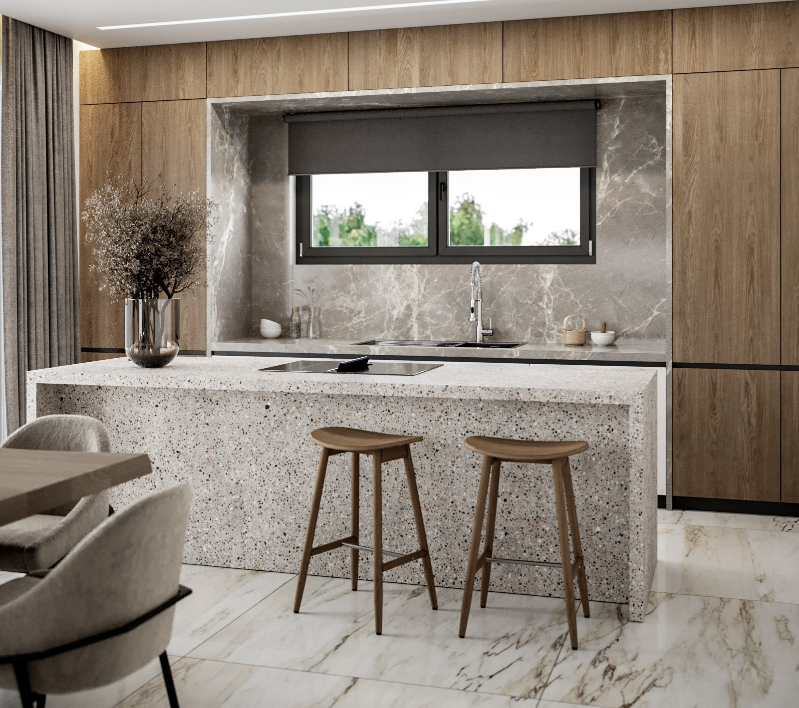 В соответствии с тем, что вы ожидаете от современных роскошных вилл для продажи на Кипре, эти виллы будут иметь высококачественную отделку, включая красивую оборудованную кухню с рабочими поверхностями из натурального камня и высококачественной фурнитурой.