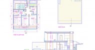 The ground floor of the house includes a spacious living room, dining room with open plan kitchen, guest bathroom. On the upper floor there are three bedrooms (master one en-suite) and a family bathroom. All three bedrooms have access to a large covered balcony overlooking the sea.