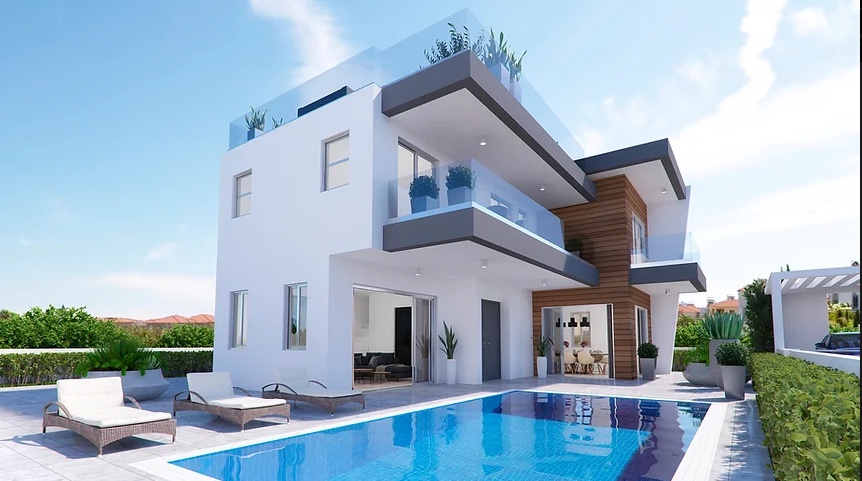 Внешний вид: Вилла имеет современный архитектурный дизайн с четкими линиями и со вкусом оформленной цветовой гаммой. Вилла окружена ландшафтным садом, что создает спокойную и уютную атмосферу. На частную террасу на крыше можно подняться по лестнице, откуда открывается панорамный вид на окрестности, включая потрясающий вид на море.