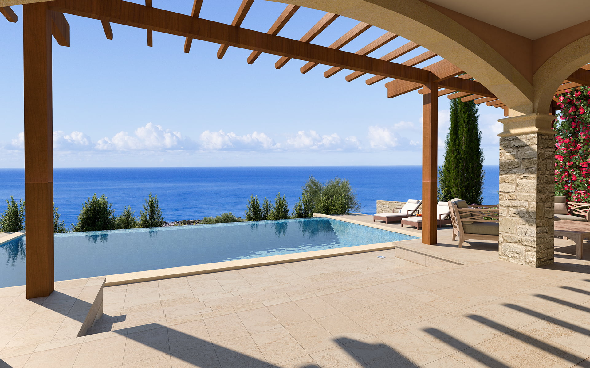 Все виллы имеют кухни в итальянском стиле со встроенной техникой из нержавеющей стали, ванные комнаты с мраморной отделкой, а также мраморные и паркетные полы.