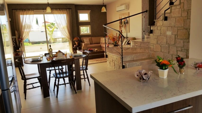 Новый комплекс вилл расположен в одном из самых популярных районов Пафоса — Хлорака. Это комплекс закрытого типа, недалеко от магазинов, автобусных остановок, кафе и всего остального необходимого для комфортной жизни. В 10 минутах езды находится частная английская школа Aspire и Русская школа Пафоса. Дом построен с учетом последних требований в сфере тепло и шумо изоляции, располагает прекрасной террасой на крыше, где можно готовить барбекю и просто наслаждаться замечательными видами. На первом этаже дома находится просторная гостиная, столовая с кухней открытого плана, гостевой санузел. На втором этаже три спальни (главная с личным санузлом) и семейная ванная комната.