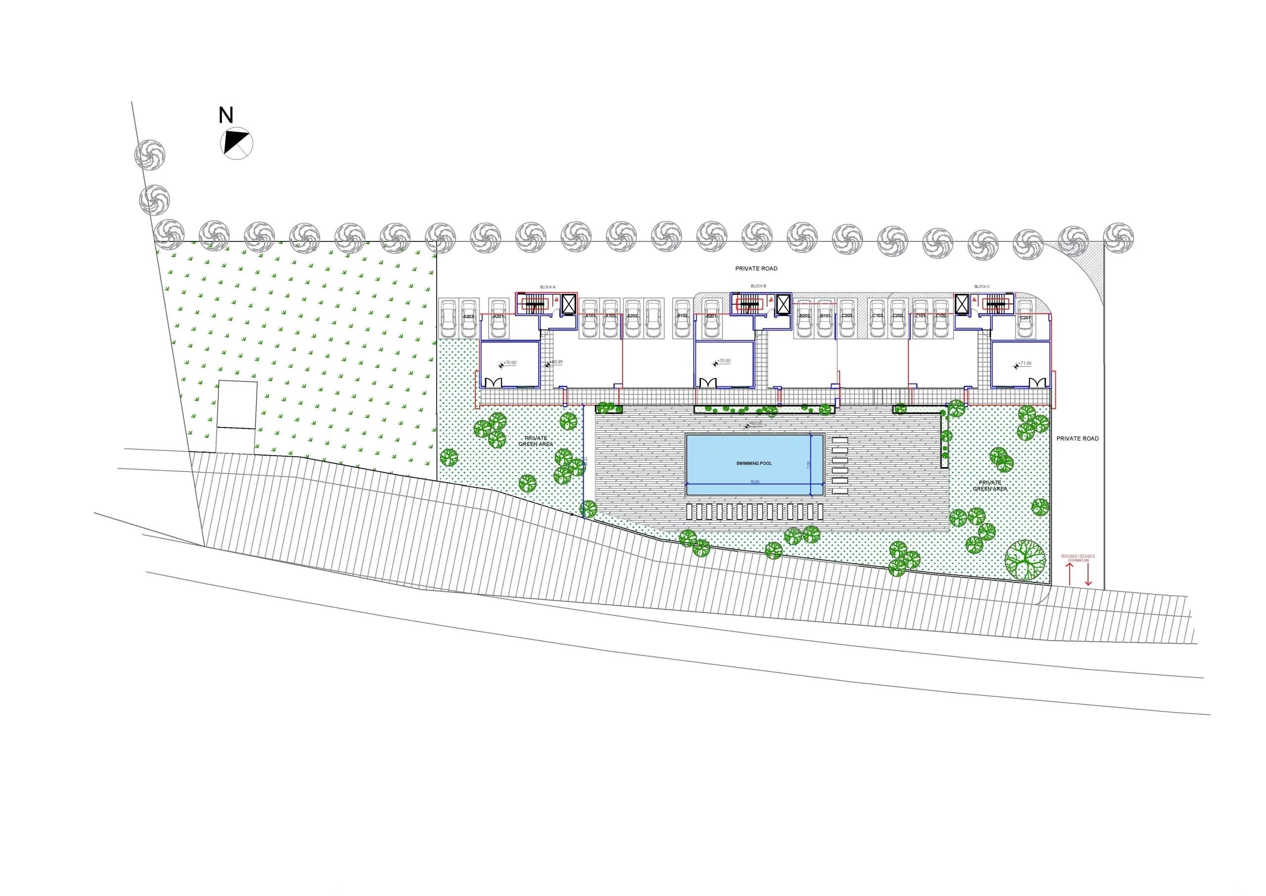 Проект состоит из трех 2-этажных зданий и 16 квартир класса люкс. Резиденты могут пользоваться большим общим бассейном, террасой с садом на крыше каждого здания, ландшафтными садами и безопасностью закрытого сообщества.