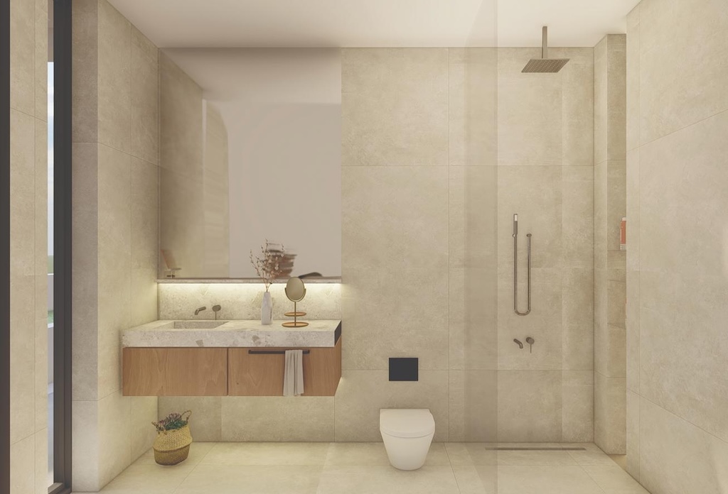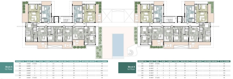 Проект, спроектированный известными архитекторами, состоит из двух блоков апартаментов, предлагающих студии, апартаменты с одной и двумя спальнями, включая домики на первом этаже с просторными частными садами и патио, а также пентхаусы с тремя спальнями и панорамным видом на море.