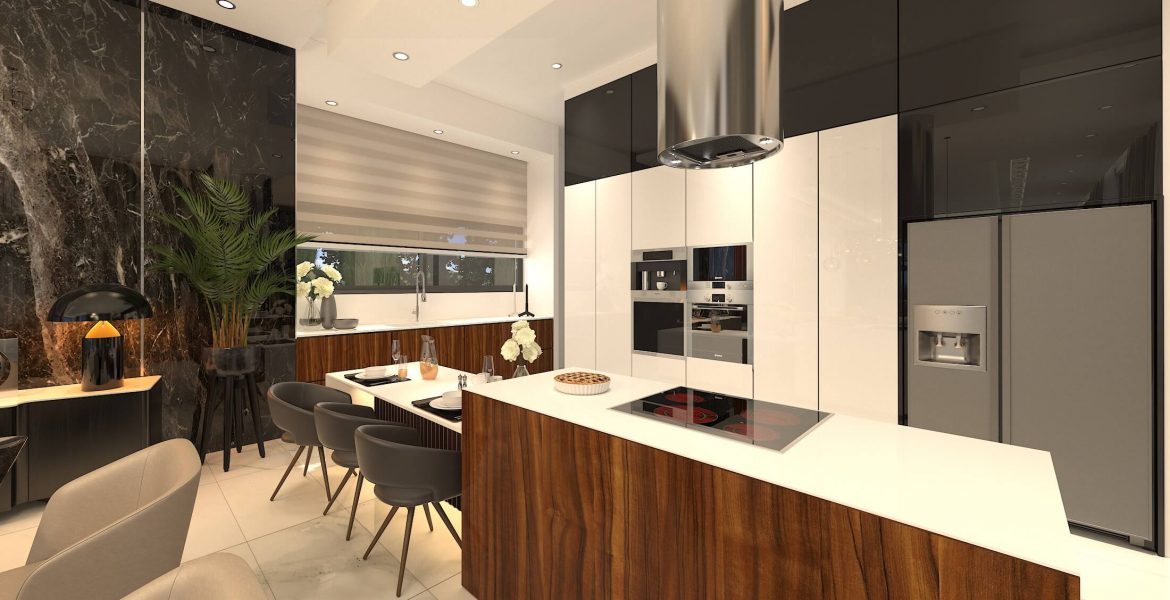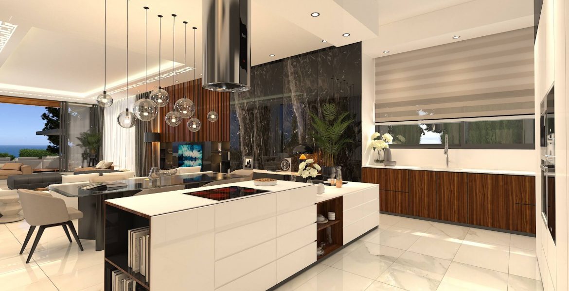 Данная вилла — это сочетание роскоши и комфорта, стиля и высоких технологий, а также великолепного месторасположения позволяющего в полной мере наслаждаться жизнью в этом прекрасном месте. Это умный дом с энергетическим сертификатом класса А, при строительстве которого испольуются такие натуральные материалы как стекло, дерево и камень, стены из теплоизоляционного кирпича, тепло и шумоизоляционные стеклопакеты. В доме могут быть как семь так и восемь спален, восемь санузлов, большая гостиная. столовая, кухня + вспомогательная кухня. прачечная, полностью оборудованная терраса на крыше с незабываемыми видами на море и морской закат. Все этажи (включая террасу) соединяются между собой как лестницей, так и лифтом. Непосредственно перед участком виллы имеется выход к песочному и галечному пляжу. В нескольких минутах ходьбы расположен круглосуточный минимаркет, кафе, рестораны, отели предоставляющие различные услуги. Ближайшая частная английская школа всего в 10 минутах езды.