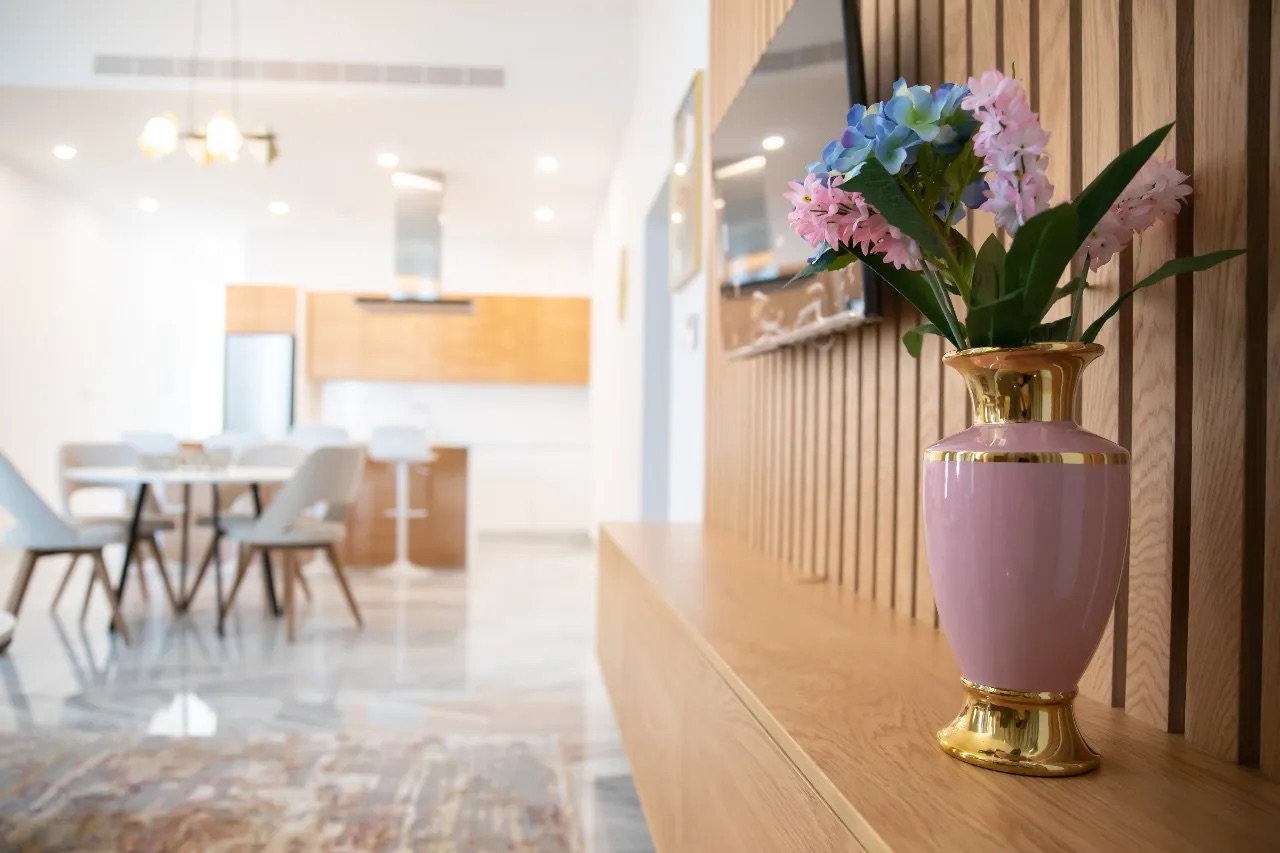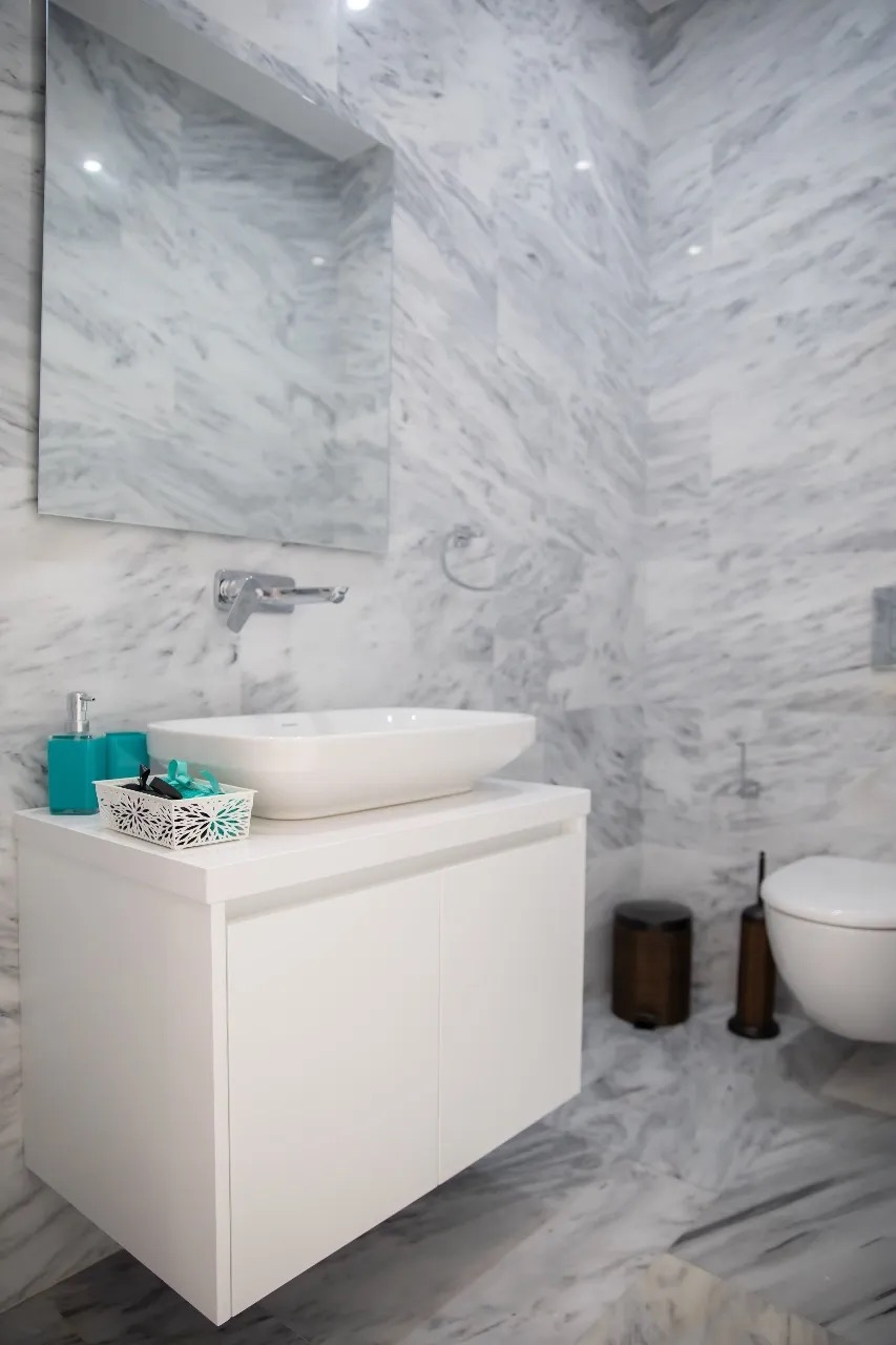 - Высококачественные материалы, включая мраморные полы в жилых помещениях и ламинированные полы в спальнях.