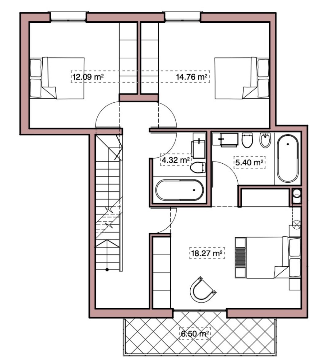 Общая крытая площадь: ~140 м²