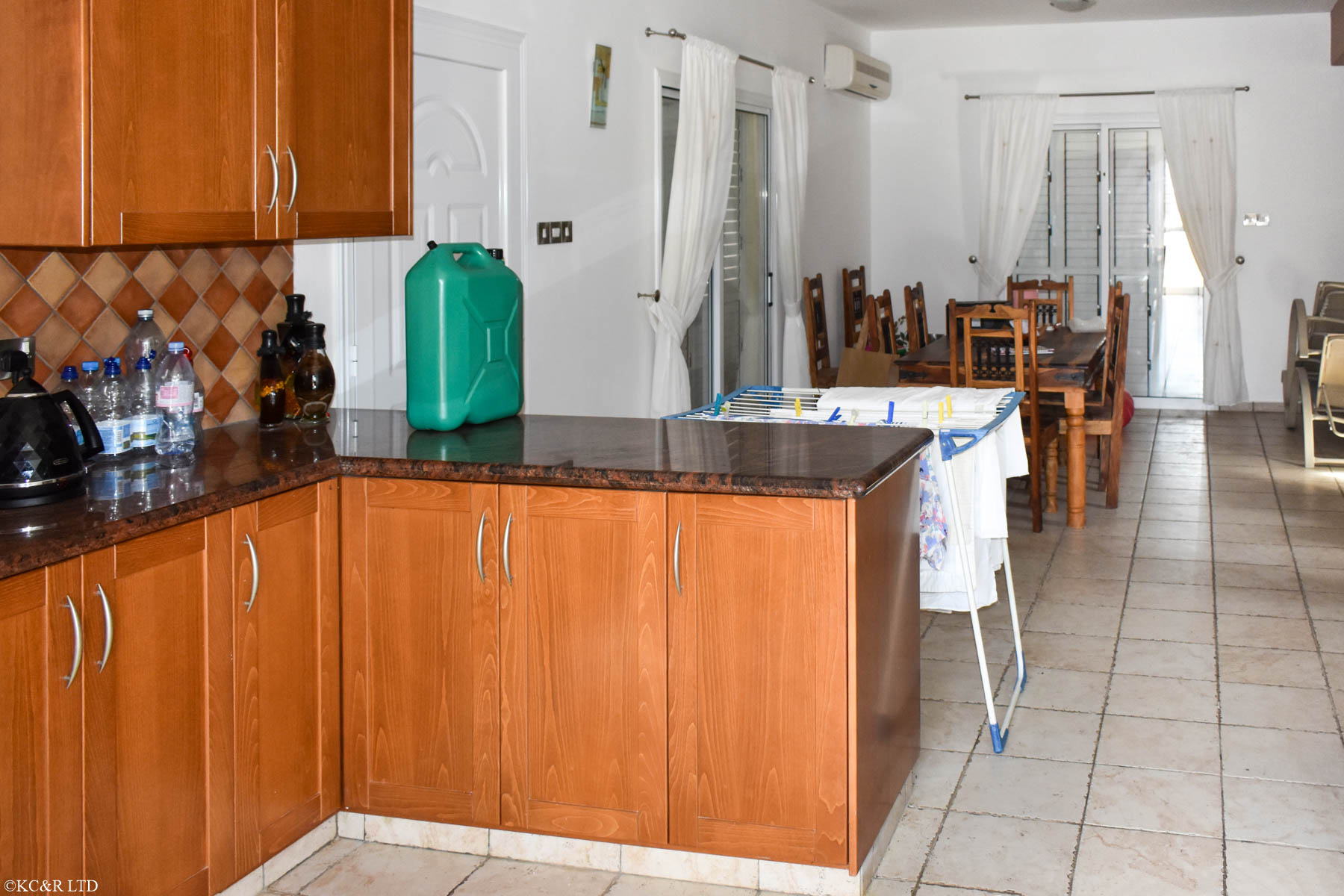 Внутри есть просторная гостиная открытой планировки с большой зоной отдыха, обеденной зоной, барной стойкой и роскошной кухней. Качественные деревянные шкафы увенчаны 4-сантиметровыми гранитными столешницами, все они оснащены фурнитурой из нержавеющей стали, подкрепленными роскошной плиткой на задней панели. Также внизу находится гостевой туалет и спальня с двуспальной кроватью с отдельным душем. На втором этаже три спальни, каждая с ванной комнатой, а также большая веранда с видом на море.