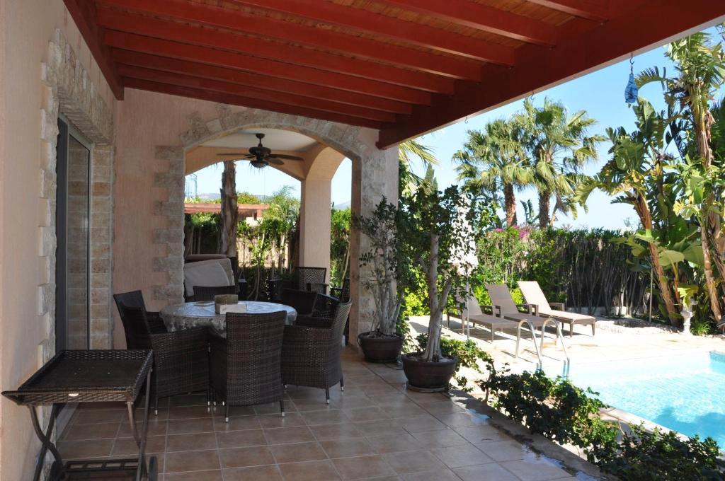 Вилла находится в 6 км от купален Афродиты и тропы Афродиты. Расстояние до международного аэропорта Пафоса составляет 50 км. За дополнительную плату организуется трансфер от/до аэропорта. Стоимость аренды 310 евро в сутки.