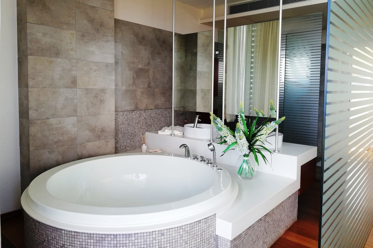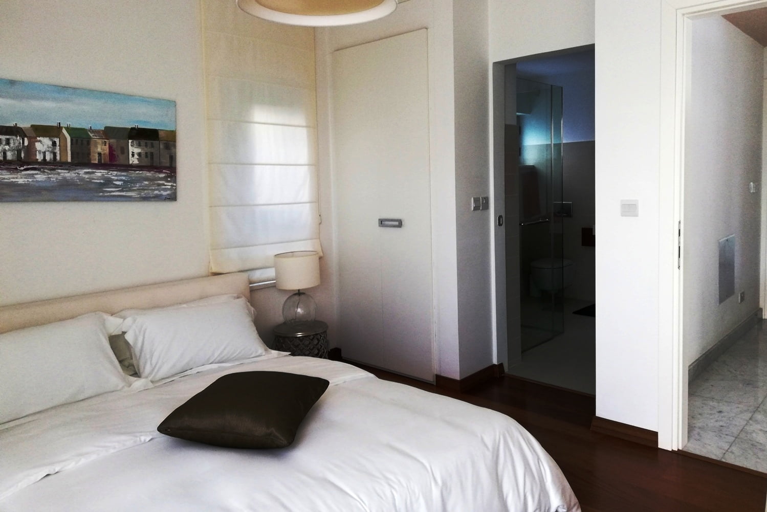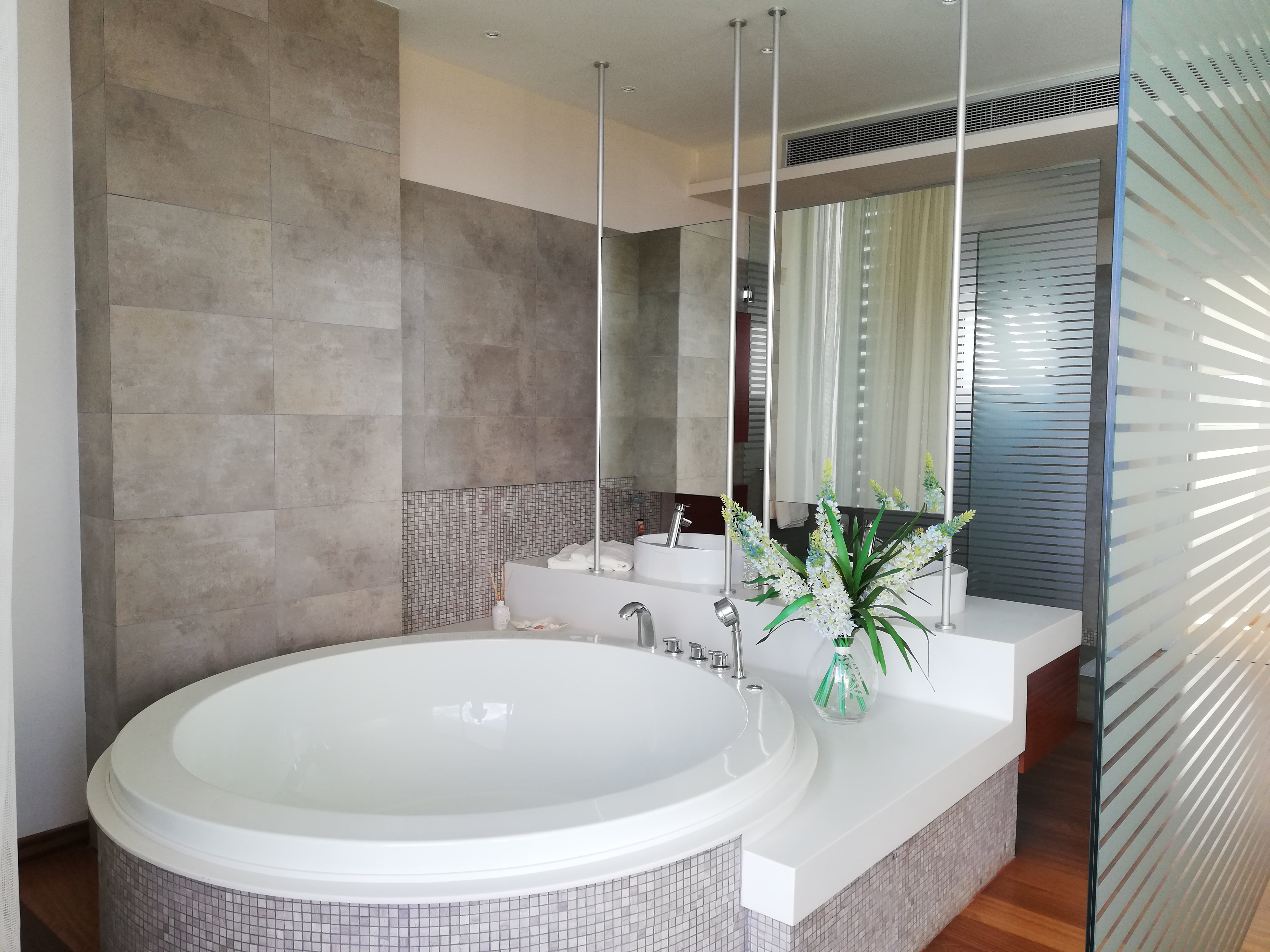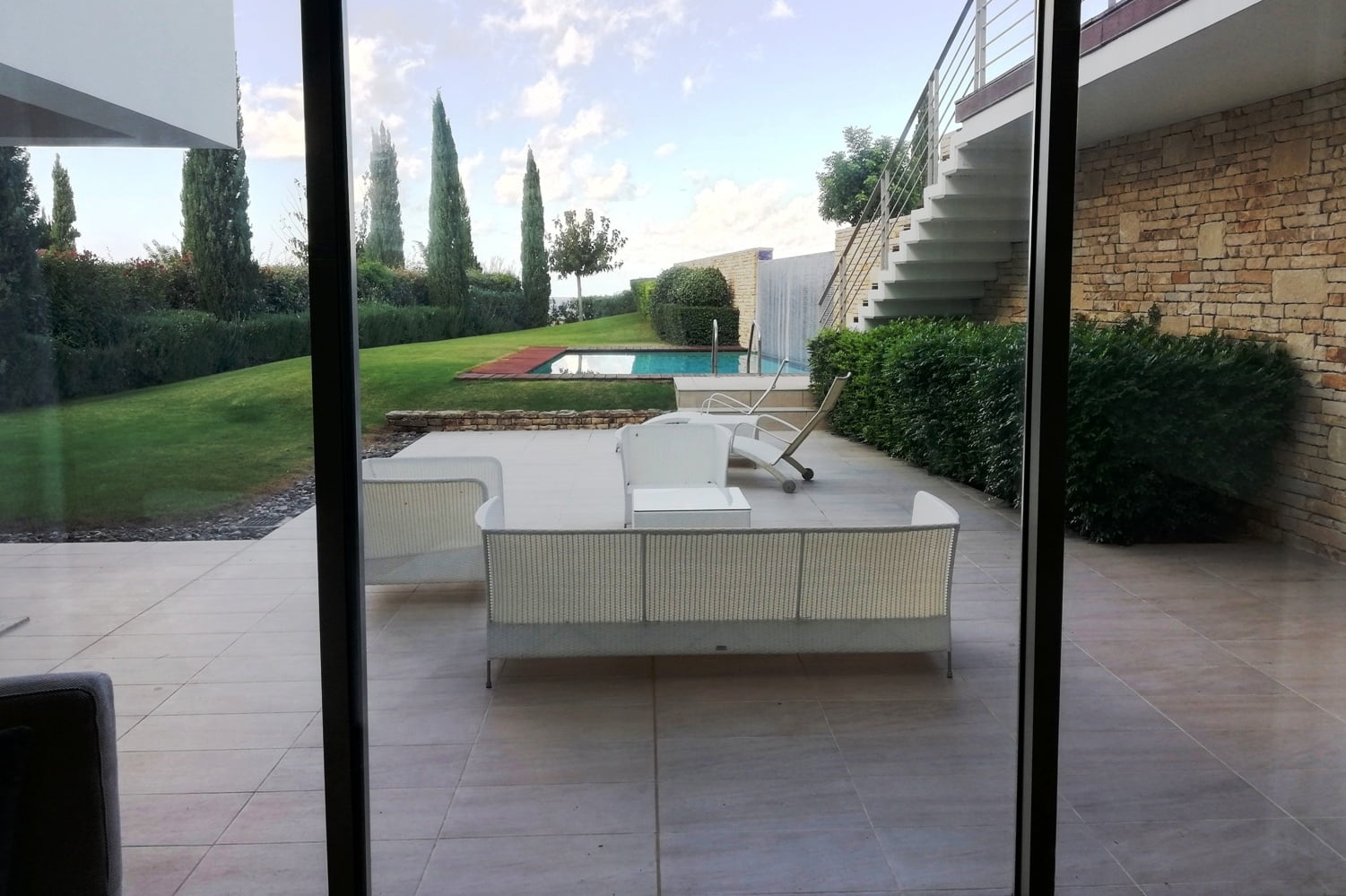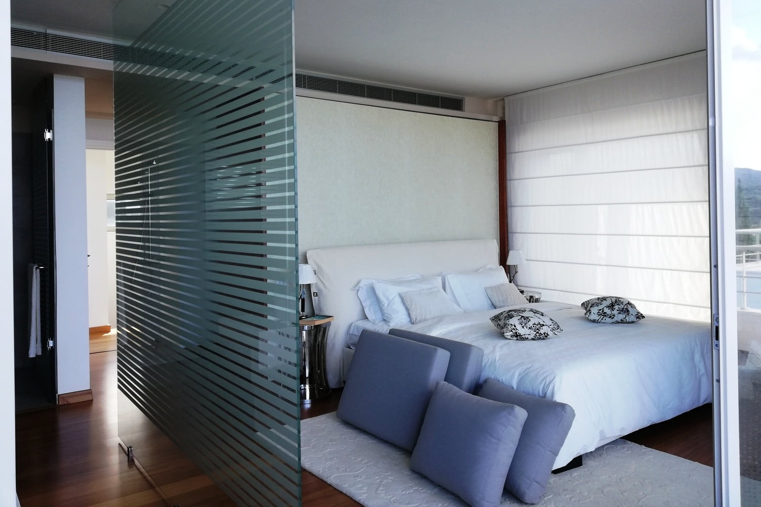 Самый верхний этаж занимает главная спальня с гардеробной, ванной комнатой, а также большая терраса с джакузи. С террас верхнего и среднего уровней открывается великолепный панорамный вид на море.