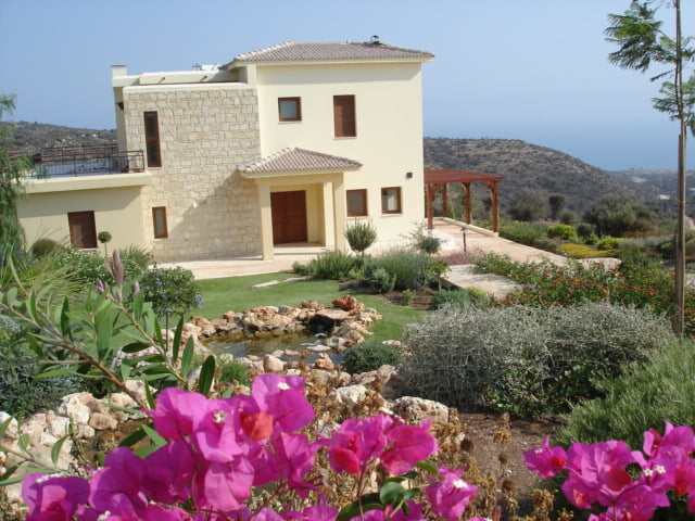 Просторная вилла площадью 250 м2 на участе 2,300 м2 с великолепным видом на море и горы в известном гольф-поселке Aphrodite Hills.