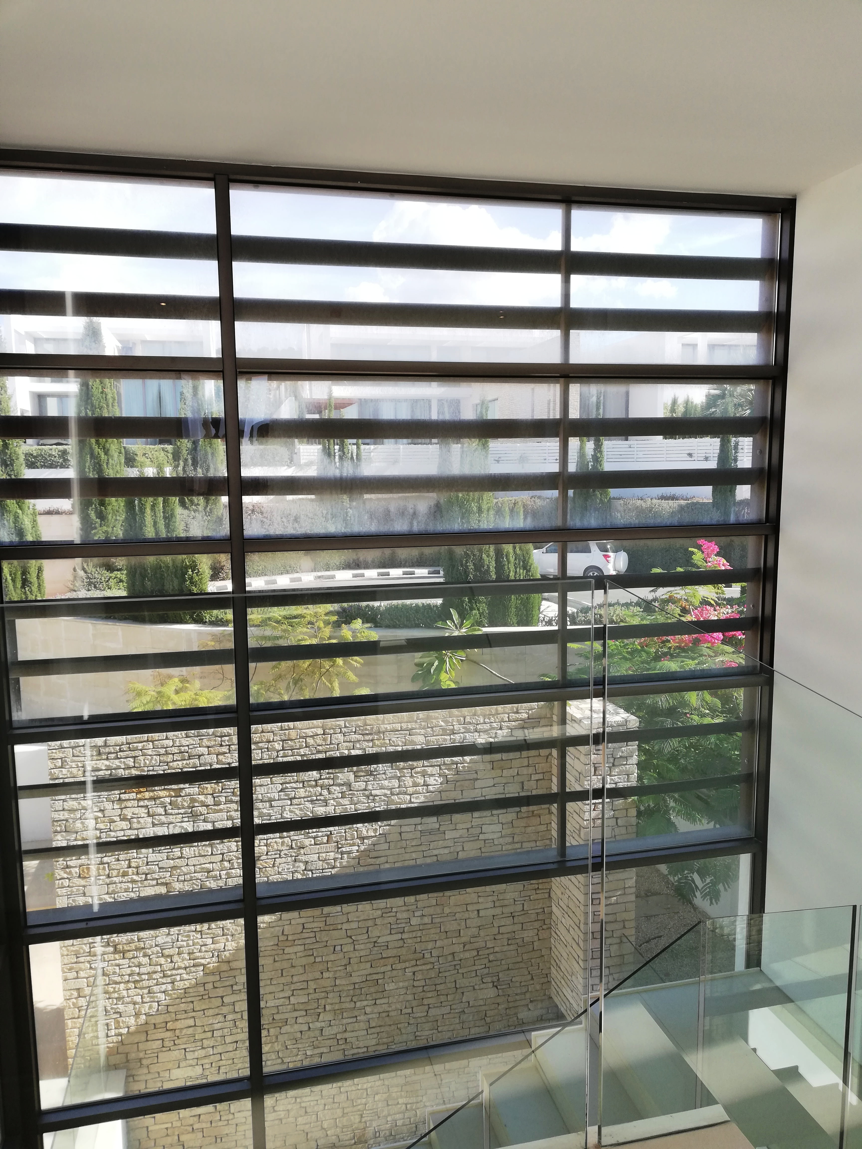 Вилла состоит из трёх уровней, на первом (главном) — большая гостиная, столовая, кабинет. кухня, санузел, спальня. На втором этаже — три спальни (две с ванными комнатами и гардеробной), ванную комнату. Цокольный этаж включает в себя две спальни, небольшую кухню, ванную комнату, прачечную, серверную. Все уровни соединяются лифтом и лестницей.
