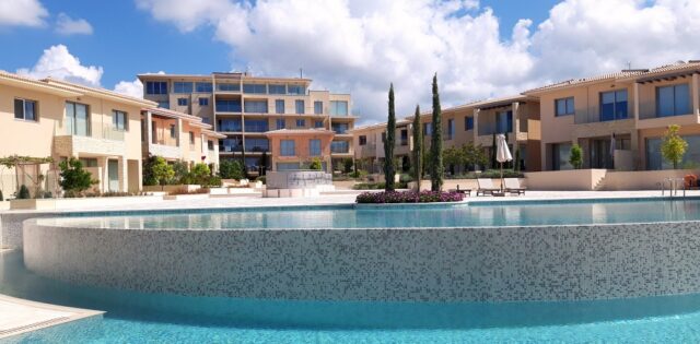 Апартаменты расположены вокруг большого бассейна в стиле лагуны, идеального места для отдыха, а для тех, кто хочет больше активности, есть крытый тренажерный зал. Каменная брусчатка, терракотовые крыши, ручей и внутренние дворы придают жилому комплексу отчетливую кипрскую атмосферу, в то время как интерьеры светлые и просторные с качественной современной отделкой.