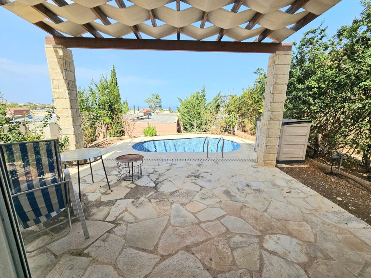 На участке расположен частный бассейн и уютная зона отдыха, идеально подходящая для наслаждения мягким климатом Кипра круглый год.